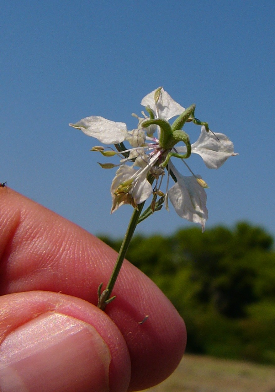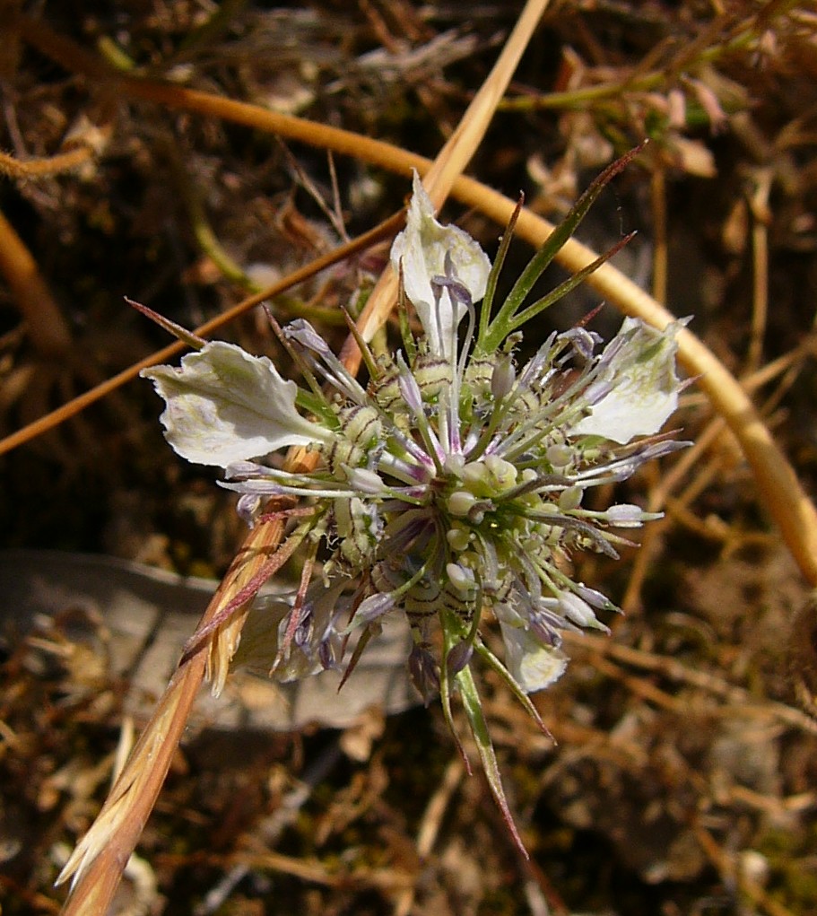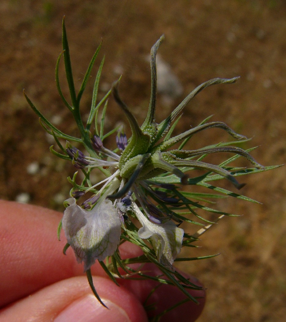 Blüten mit einigen Hochblättern direkt unter der Blüte Fruchtblätter deutlich warzig Blüten mit einigen Hochblättern direkt unter der Blüte Staubblätter mit Granne Stängelblätter lang, Blattabschnitte pfriemlich