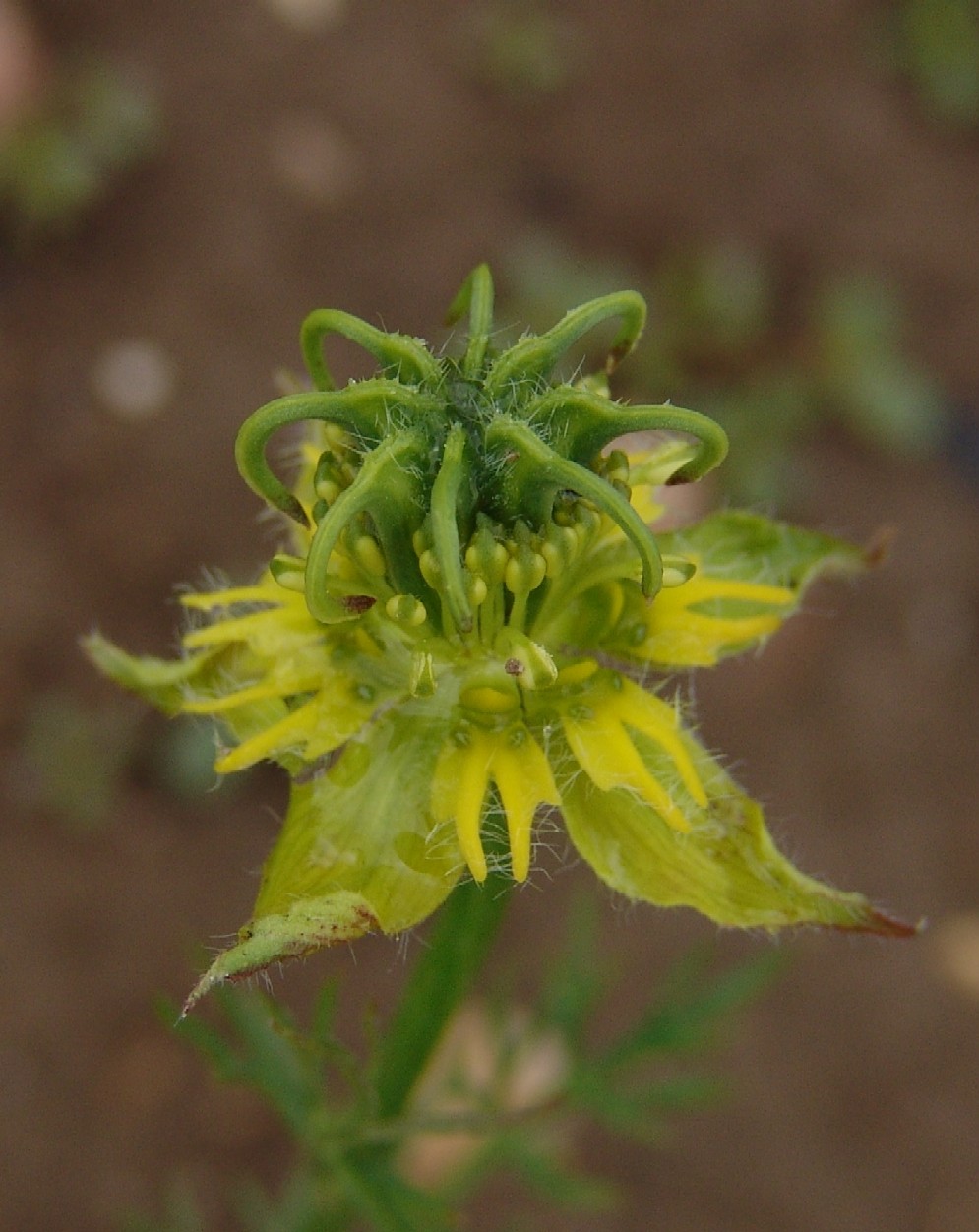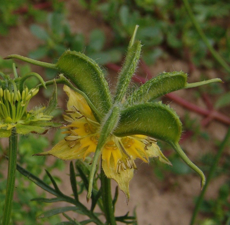 Blüte ohne Hochblatthülle, mit 5 gelben Blütenblättern,