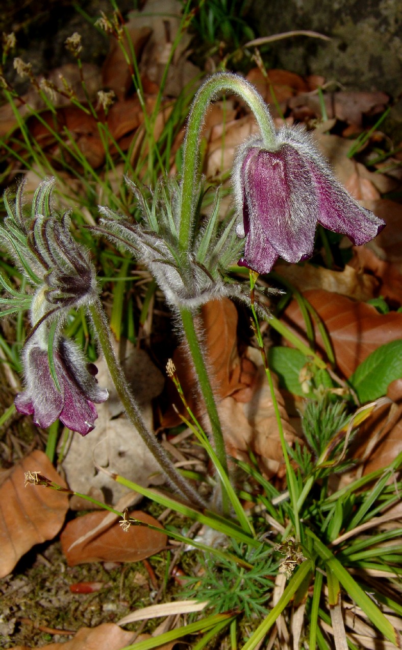 Pulsatilla - Blüten nickend, innen dunkelviolett oder rotviolett