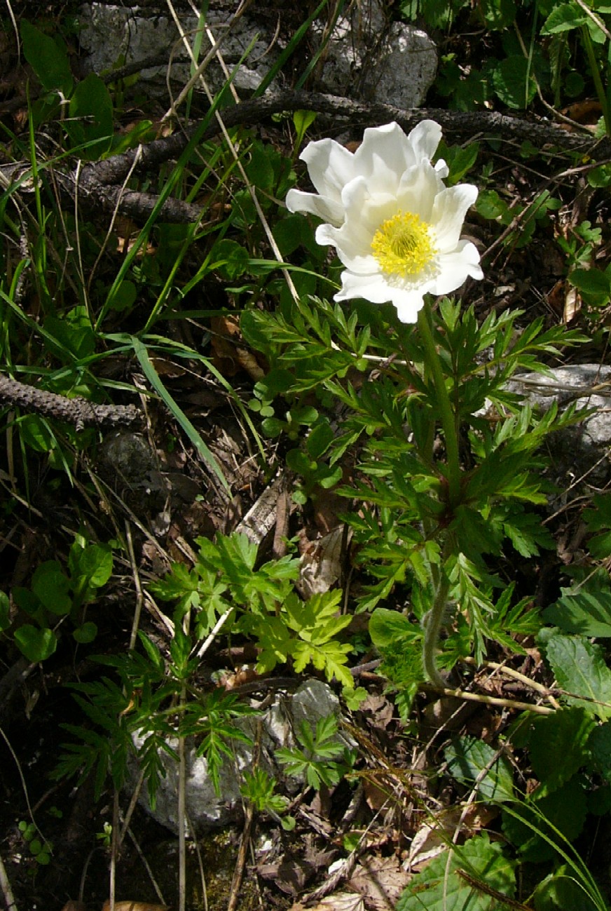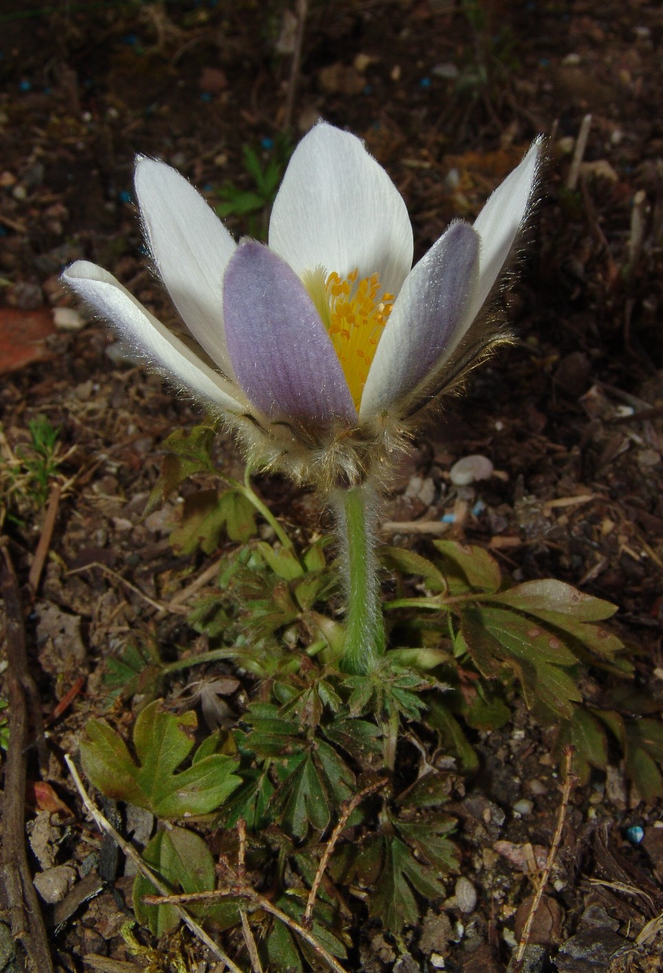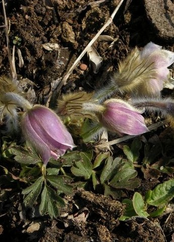 2 Blüten außen hellviolett, Blättchen der Grundblätter mit 2 - 3- spaltigen Abschnitten