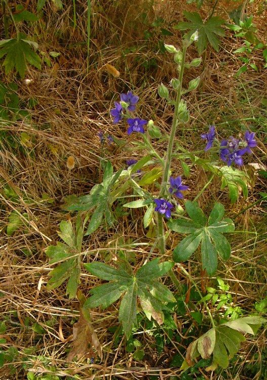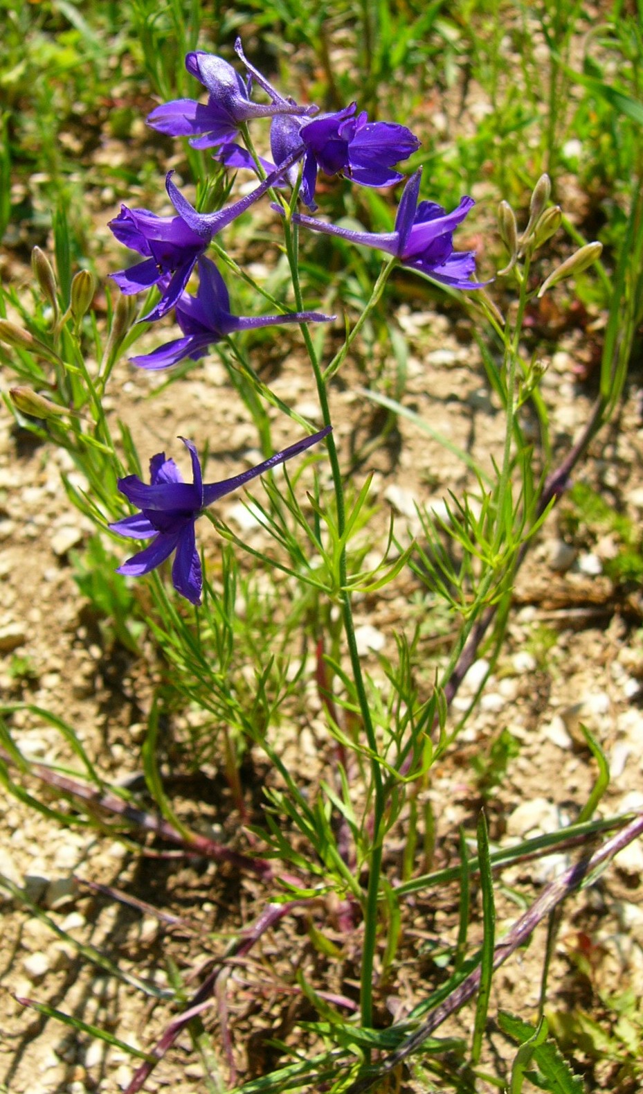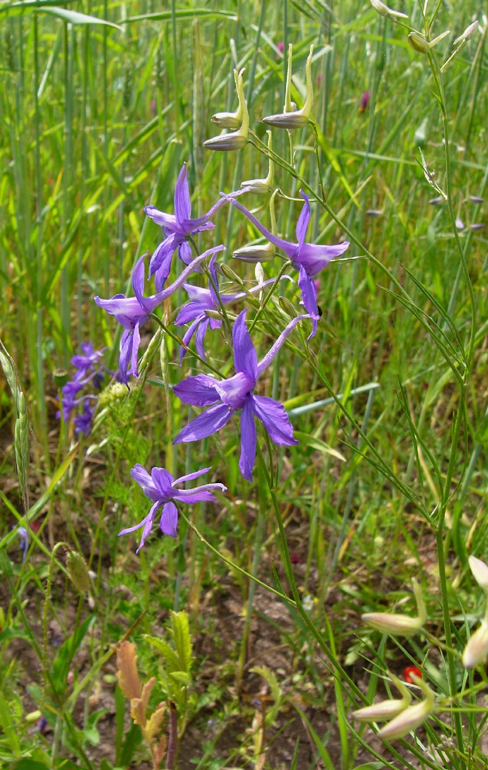 blau, violett oder rot, dorsiventral, mit 1 Sporn
