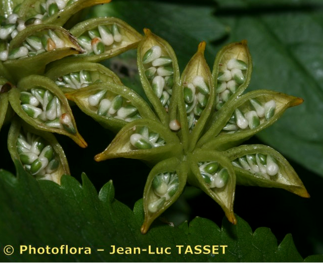 Balgfrüchte abgeflacht, gekrümmtsternförmig angeordnet
