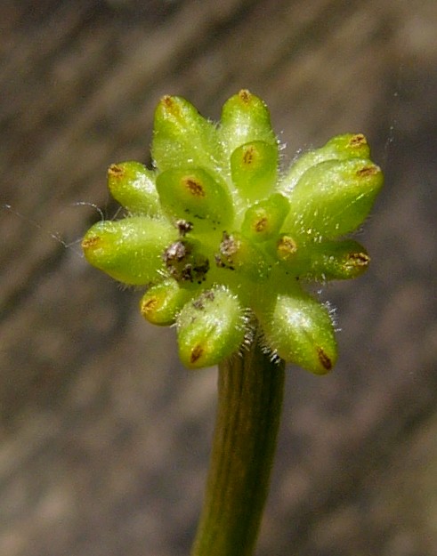 1 Stängel mit 3 quirlständigen, behaarten Hochblättern Perigonblätter außen bräunlich, behaart, ohne Hochblatthülle