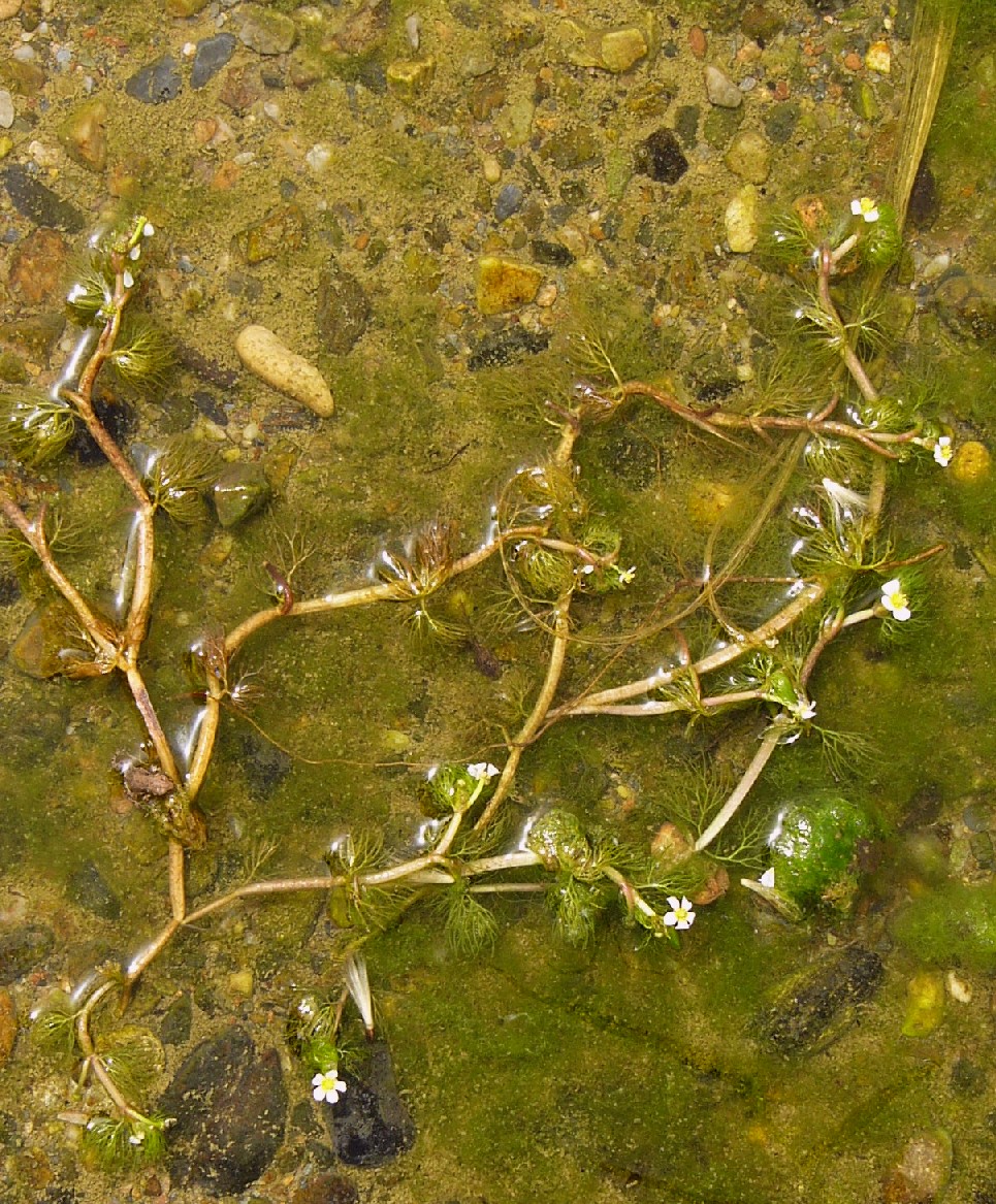 Ranunculus - Wasserpflanzen, Blüten weiß, ohne Schwimmblätter, nur mit haarfein zerteilten Tauchblättern