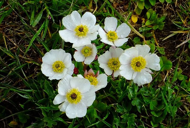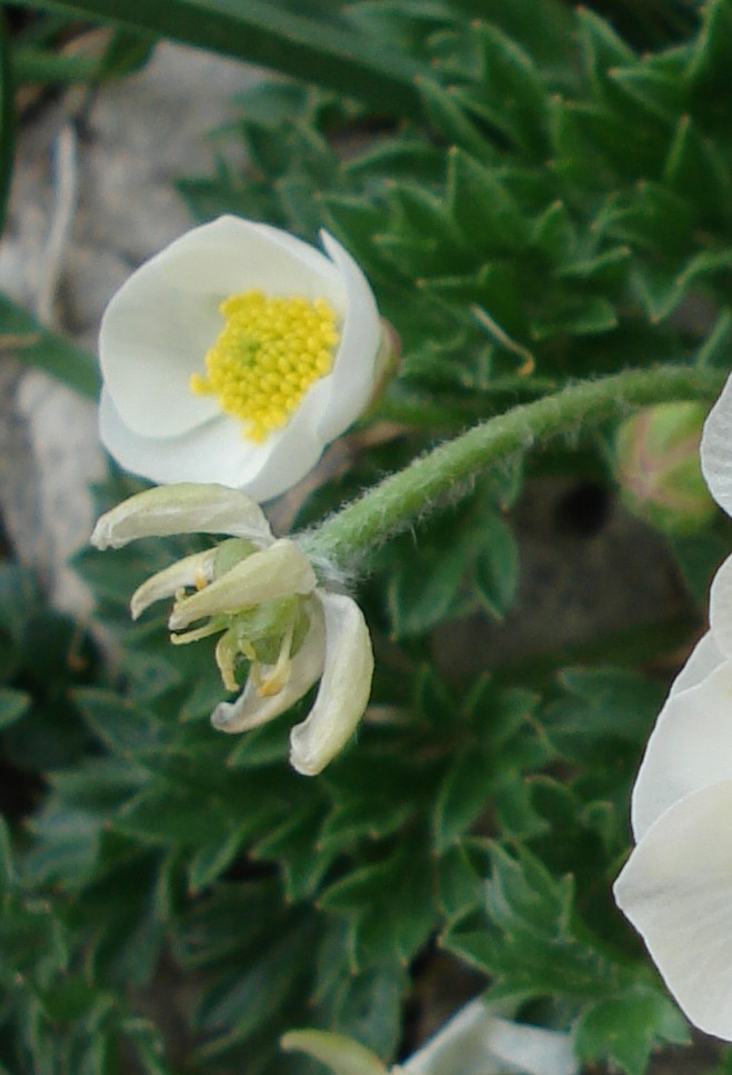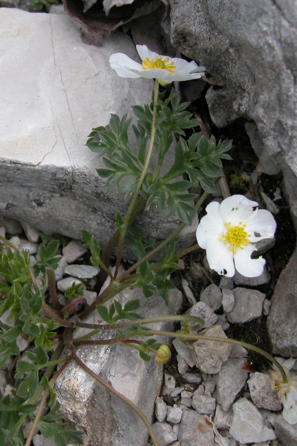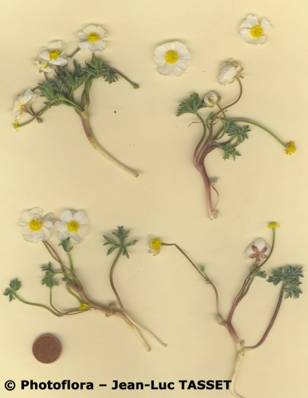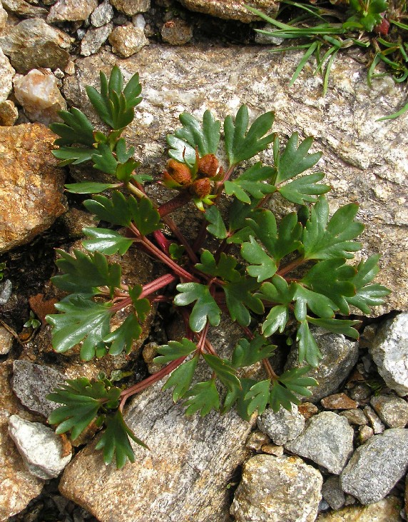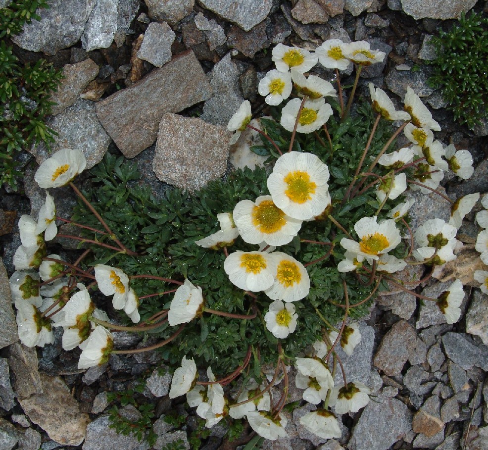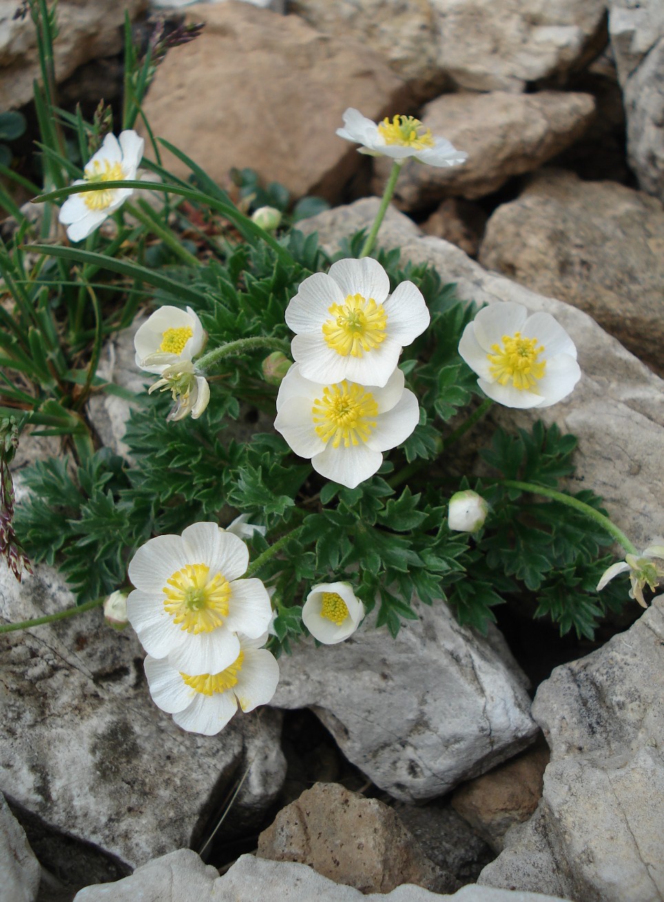 Ranunculus - Landpflanzen, 5 - 15 cm groß, meist unverzweigt, 1 - 2- blütig, Blüten weiß, Grundblätter fiederteilig