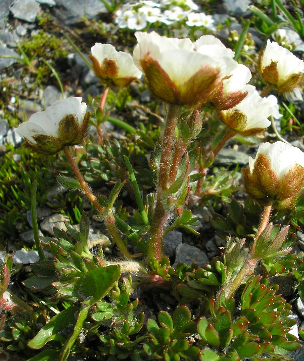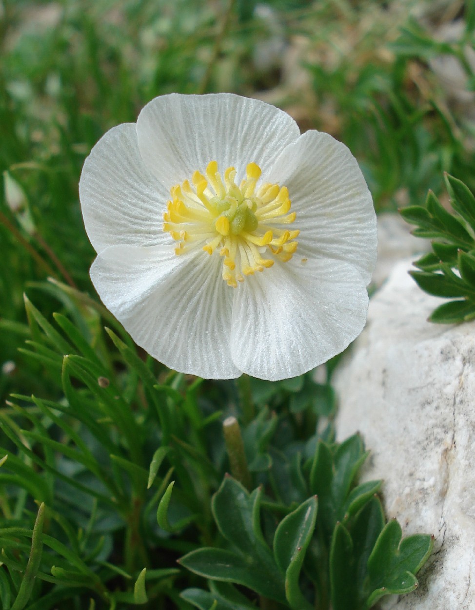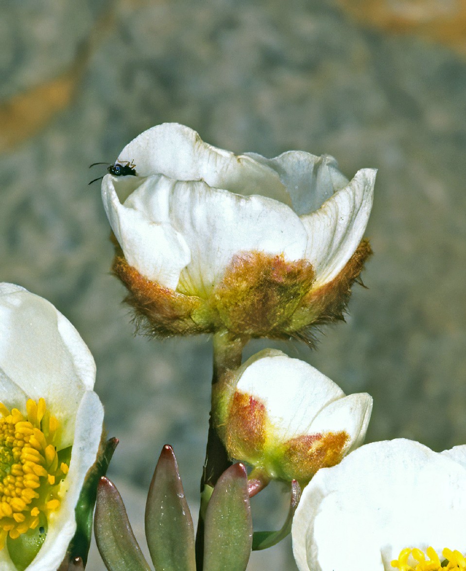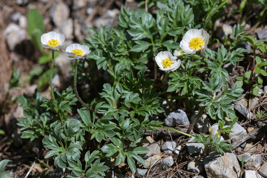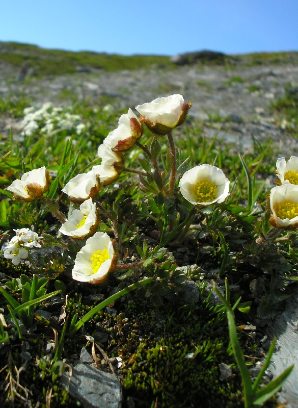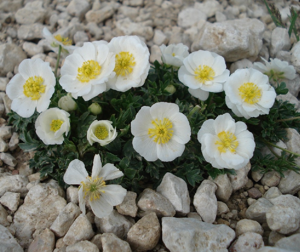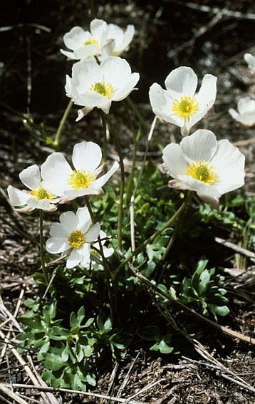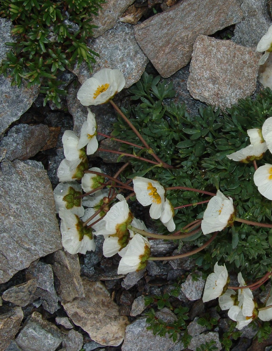 Ranunculus - Landpflanzen, 5 - 15 cm groß, meist unverzweigt, 1 - 2- blütig, Blüten weiß, Grundblätter fiederteilig