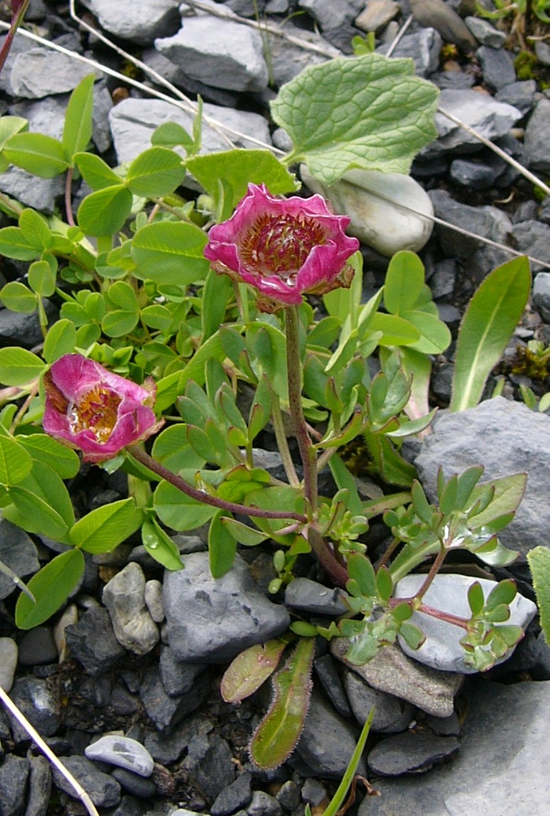 Kelch und Krone nach der Blüte bleibend, Grundblätter 3- teilig, mit fiederspaltigen Abschnitten