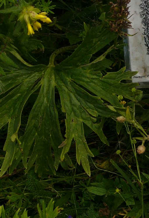 meist waagrecht abstehend Blattabschnitte meist 5, breit lanzettlich, höchstens zu 80 % eingeschnitten Spitze der Blattzipfel stumpf > 1