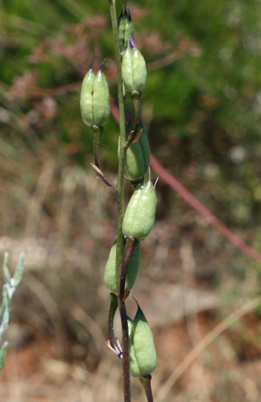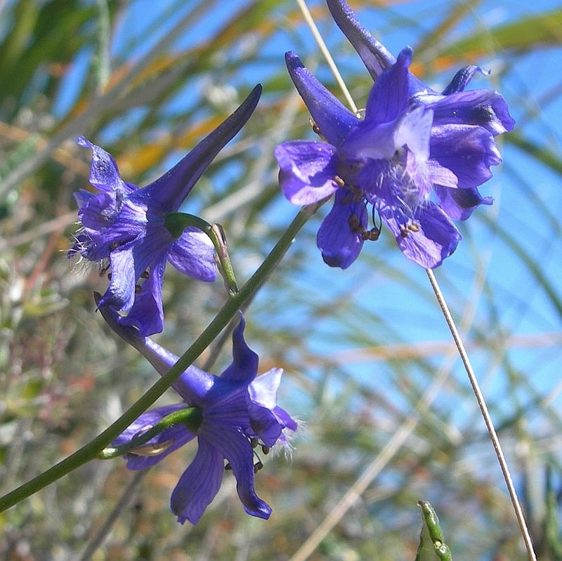 Portugal, Spanien Pflanze bis 160 cm hoch Stängel und Blütenstandsachse kahl Perigonblätter blau, deutlich kürzer als der Sporn > 2