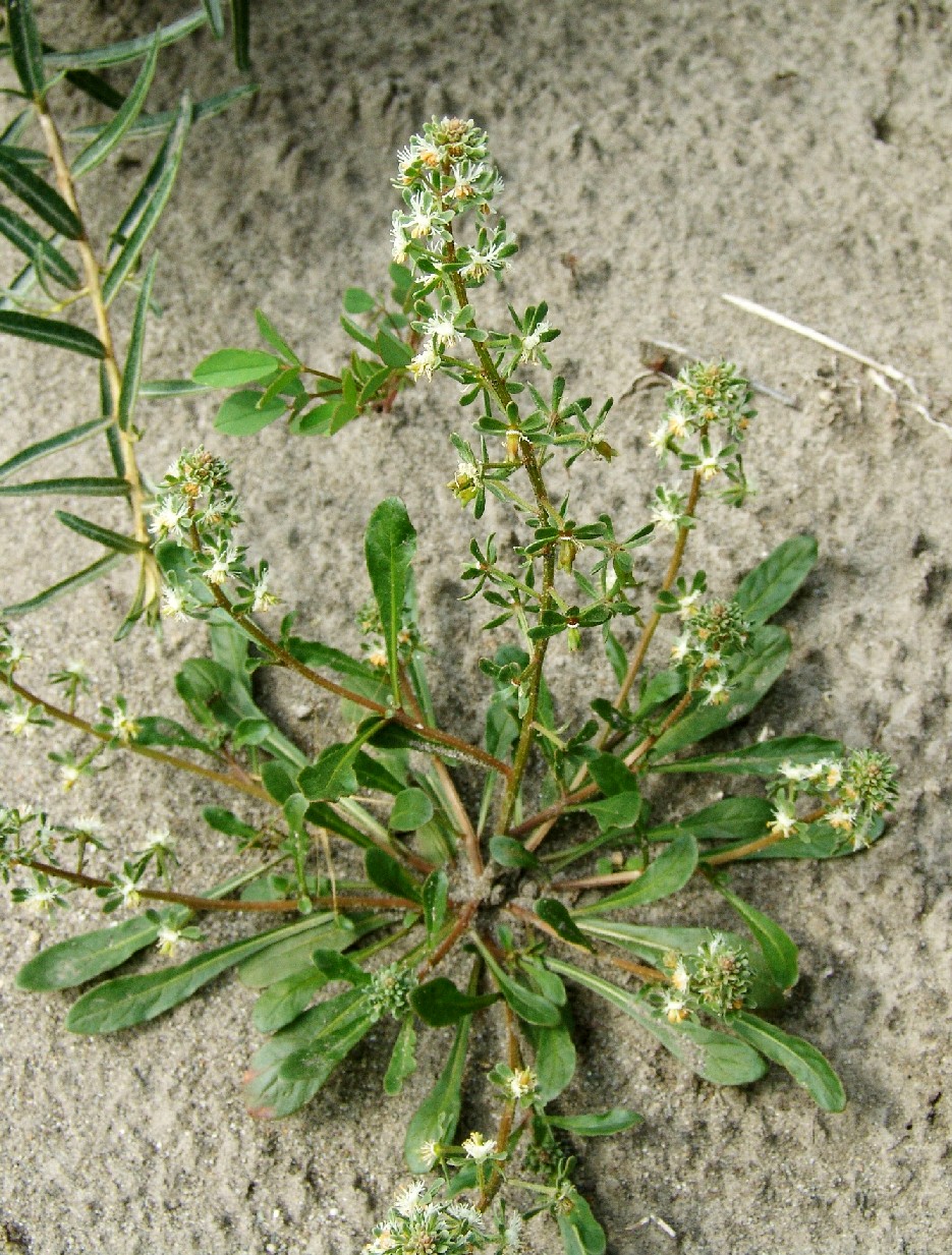 1 Blütenstandsachse mit langen Borsten, Kelchblätter 3 - 5 mm lang, zur Fruchtzeit wenig vergrößert