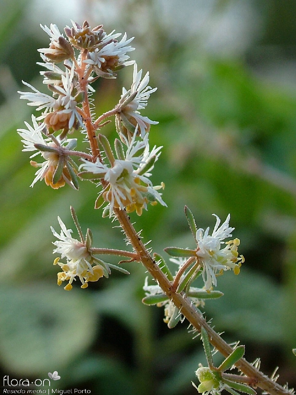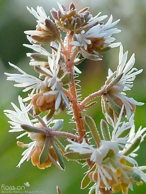 Krone mit 6 Kronblättern, Kronblätter 3 - 7 mm lang, weiß, ´ Obere Kronblätter mit rundlichem Nagel, Lippe aus 5 - 8 Fimbrien, seitliche Kronblätter ohne Nagel, mit 5 - 8 Fimbrien, 17 - 20 Staubblättern, Staubblätter so lang oder etwas kürzer als die Kronblätter, Staubfäden kahl, Staubbeutel anfangs orange später gelb