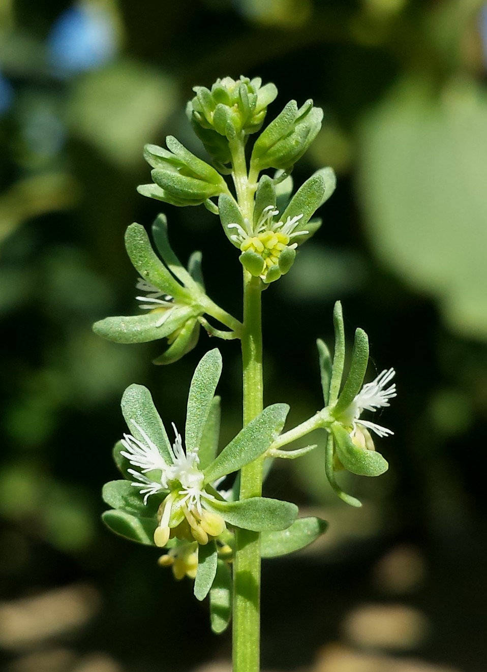 Blütenstand traubig, Blütenstiele zur Blütezeit 3 mm lang, zur Fruchtzeit 5 - 7 mm lang, Tragblätter der Blüten 1 - 2 mm lang, bleibend