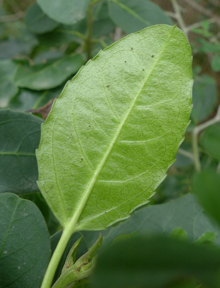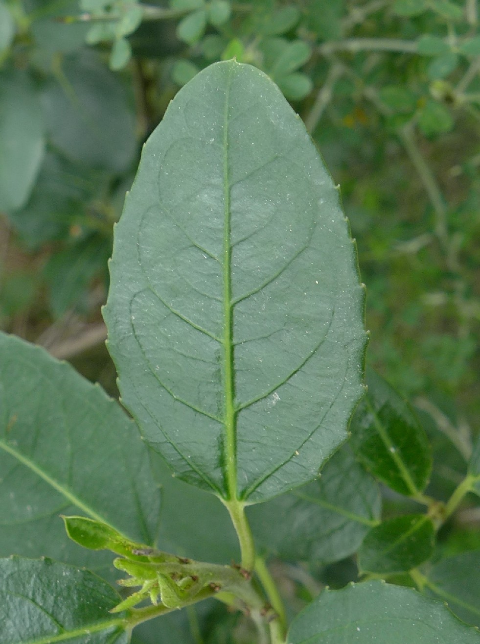 4 Bis 5 m hoher Strauch, Blätter 20 - 60 mm lang, obere Seitennerven undeutlich