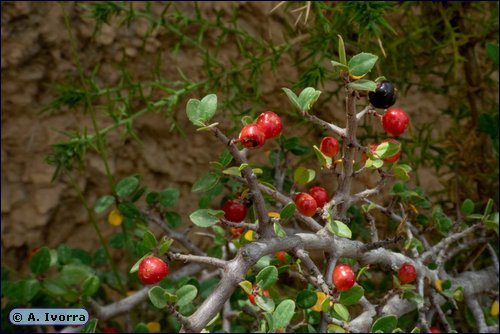 Fruchtknoten weiblicher Blüten mit 3 Griffelästen Äste ohne Sprossdornen