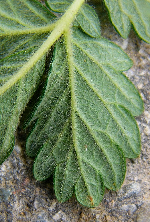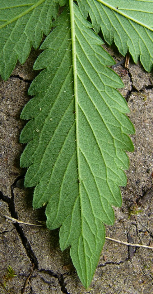 Stängel langen und kurzen, gekräuselten Haaren, nicht drüsig (deshalb nicht riechend), Nebenblätter groß, gezähnt