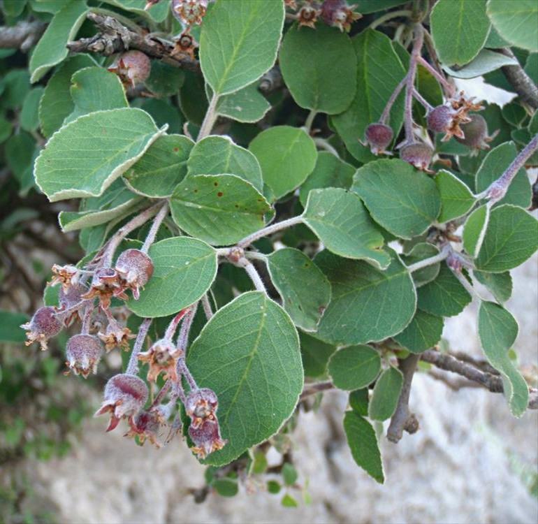 Blütenstand mit 5 - 10 Blüten, junge Zweige filzig