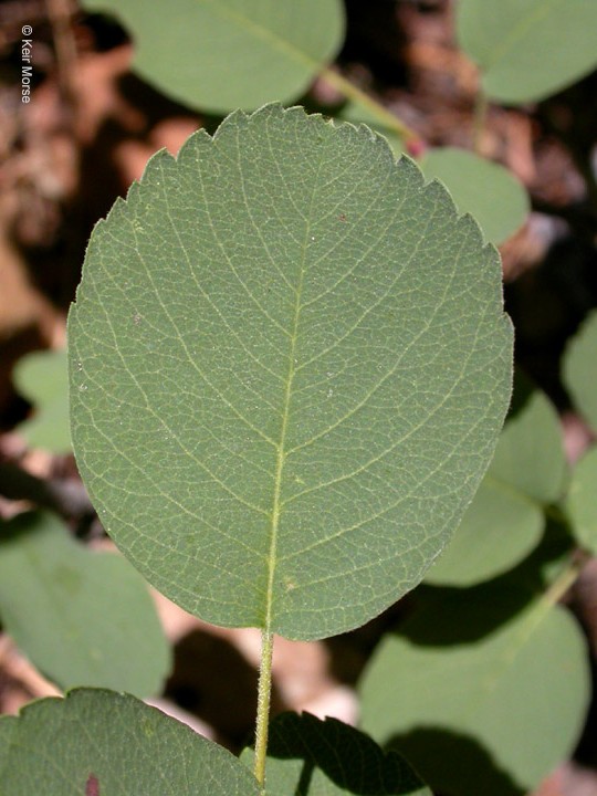 Blätter mit 8 - 13 Blattadern, die bis wenigstens im oberen Teil der Blätter bis in die Blattzähne auslaufen