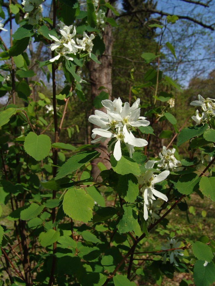 Blätter zu Blütezeit meist voll entfaltet, rundlich bis breit elliptisch, 2 - 5 Zentimeter lang, abgerundet bis gestutzt, im vorderen Teil grob gezähnt, im unteren Teil meist glattrandig