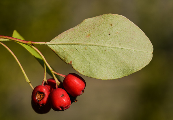 Früchte kugelig, rot, schwach behaart, mit 1 - 2 Steinfrüchten