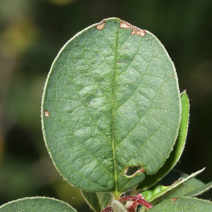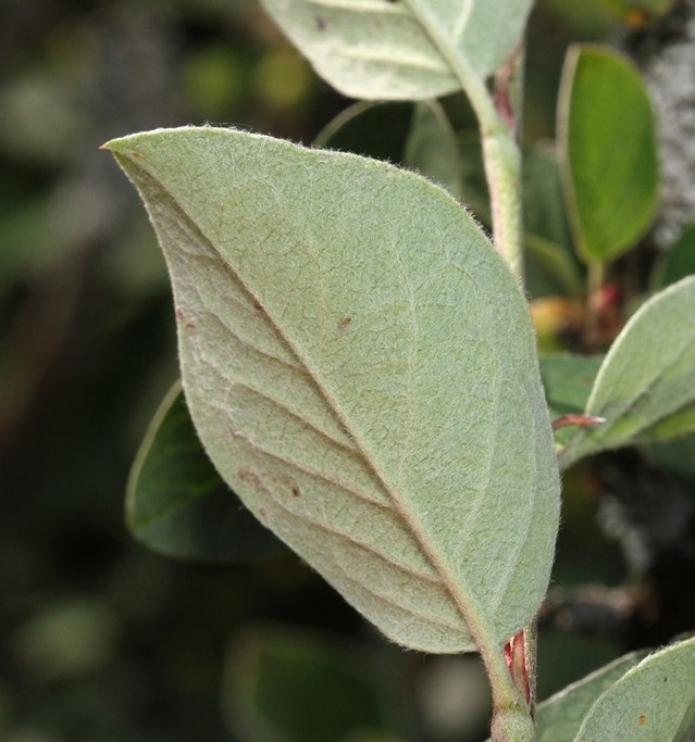 Junge Zweige behaart Blätter 10 - 24 mm lang, 8 - 20 mm breit, elliptisch,