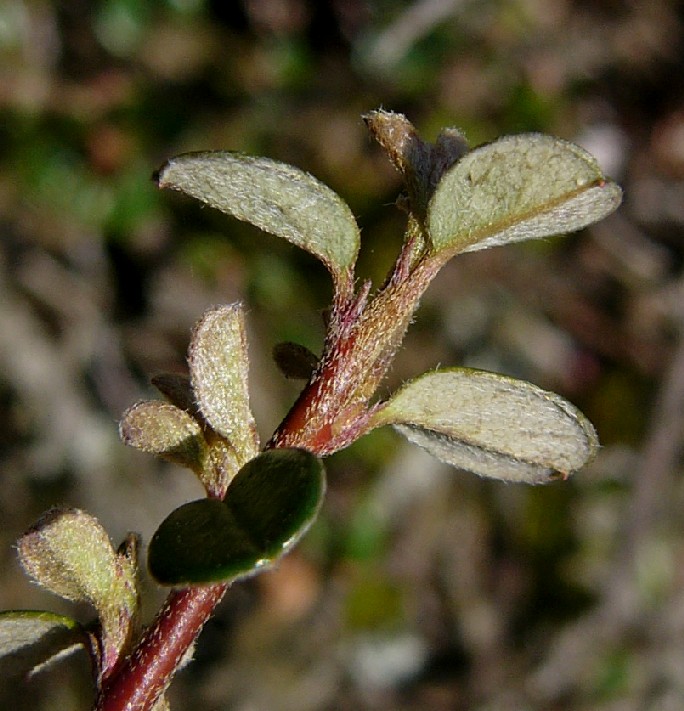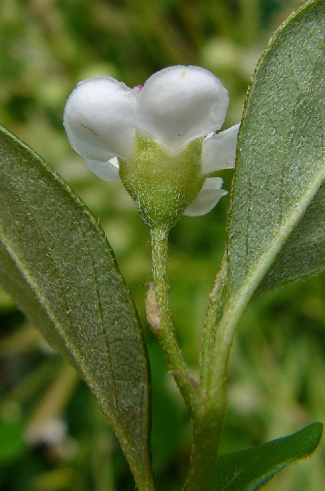 Zweige dem Boden aufliegend und aufrecht abstehend Blätter meist kleiner 2 cm, Blüten mit 3 Griffeln, Früchte mit 3 Steinkernen > 6