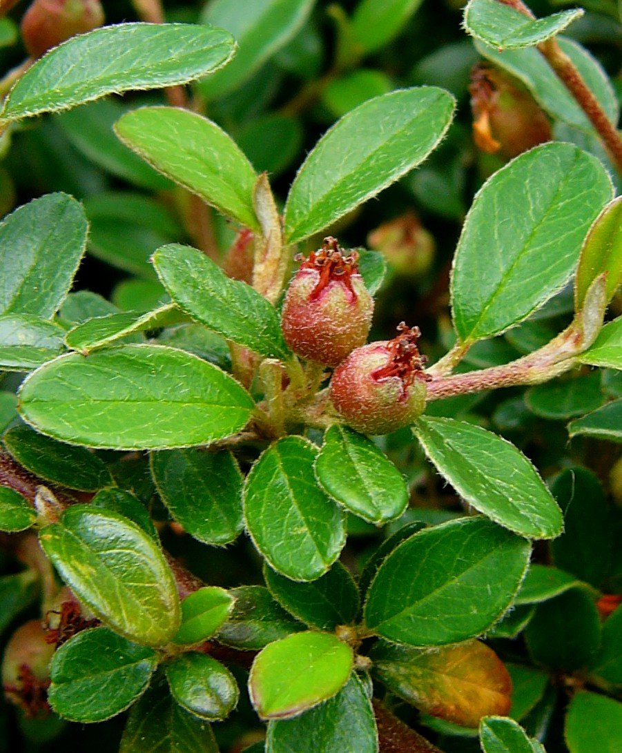 Deutschland: Weltweite Verbreitung: Eingebürgert in: Benannt nach dem deutschen Botaniker Carl Lebrecht Udo Dammer (1860 - 1920) Viele als Cotoneaster dammeri verkaufte Sorten sind wohl Hybride mit anderen Cotoneaster- Arten z.B. - Cotoneaster dammeri 'Eichholz' ist wohl ein Hybrid mit Cotoneaster microphyllus var. colcheatus. Diese Sorte hat deutlich kleinere Blätter und nur 3 Griffel bzw. Steinkerne