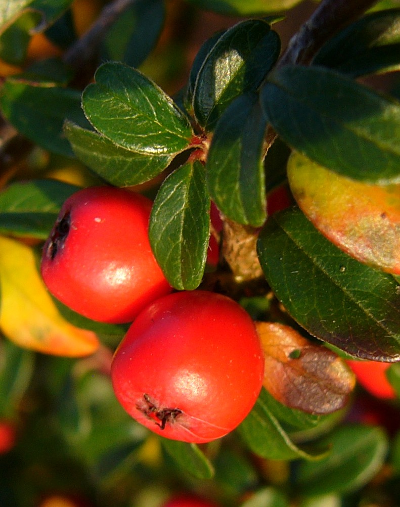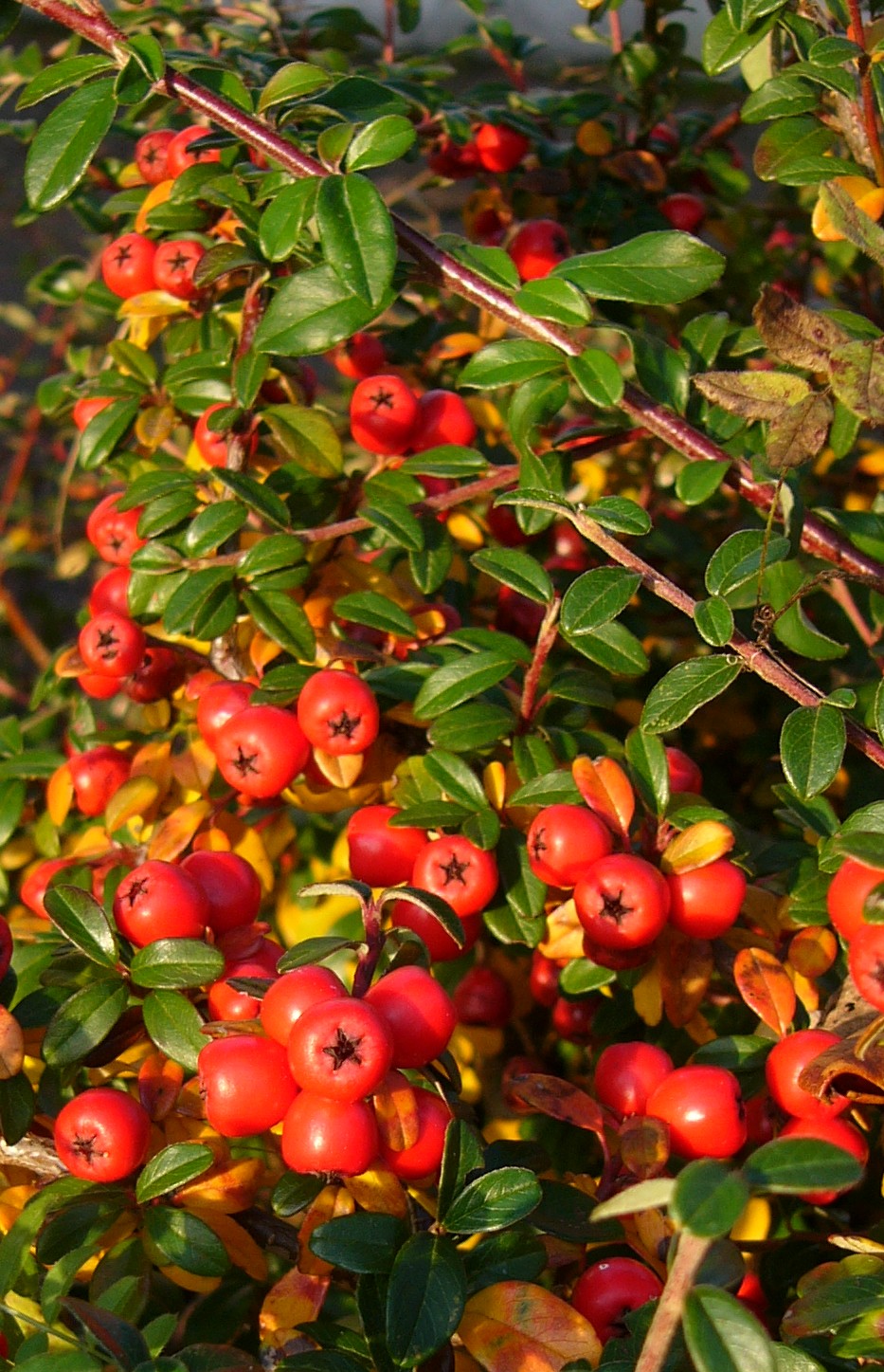 Früchte kugelig, rot, mit 4 - 5 Steinkernen