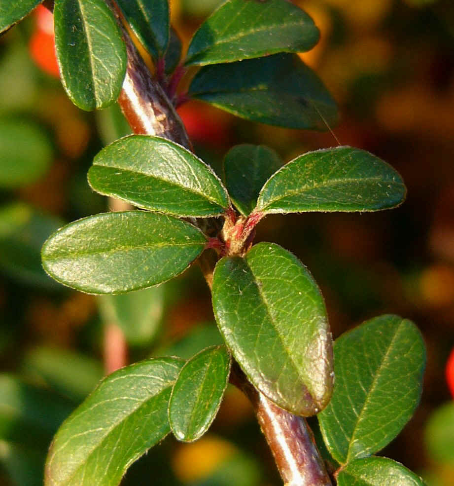 Blätter 10 - 30 mm lang, elliptisch, ledrig, oberseits glänzend