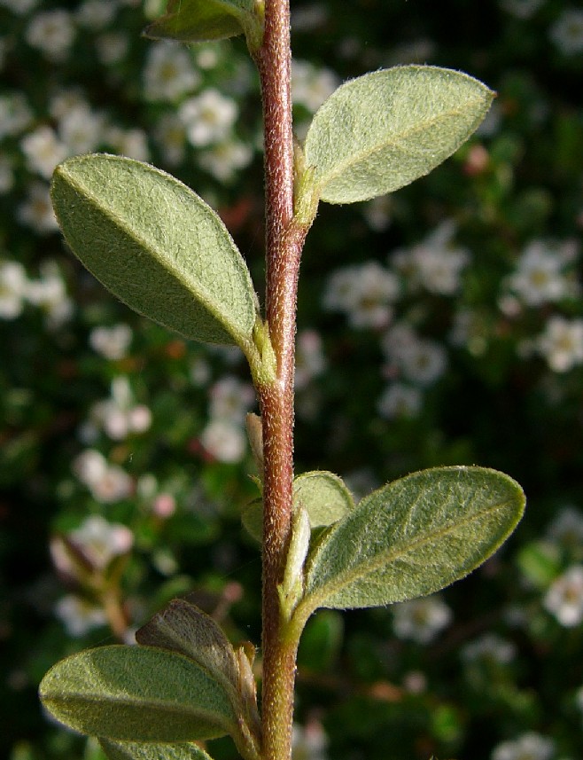 Blätter unterseits hellgrau, anfangs behaart später verkahlend
