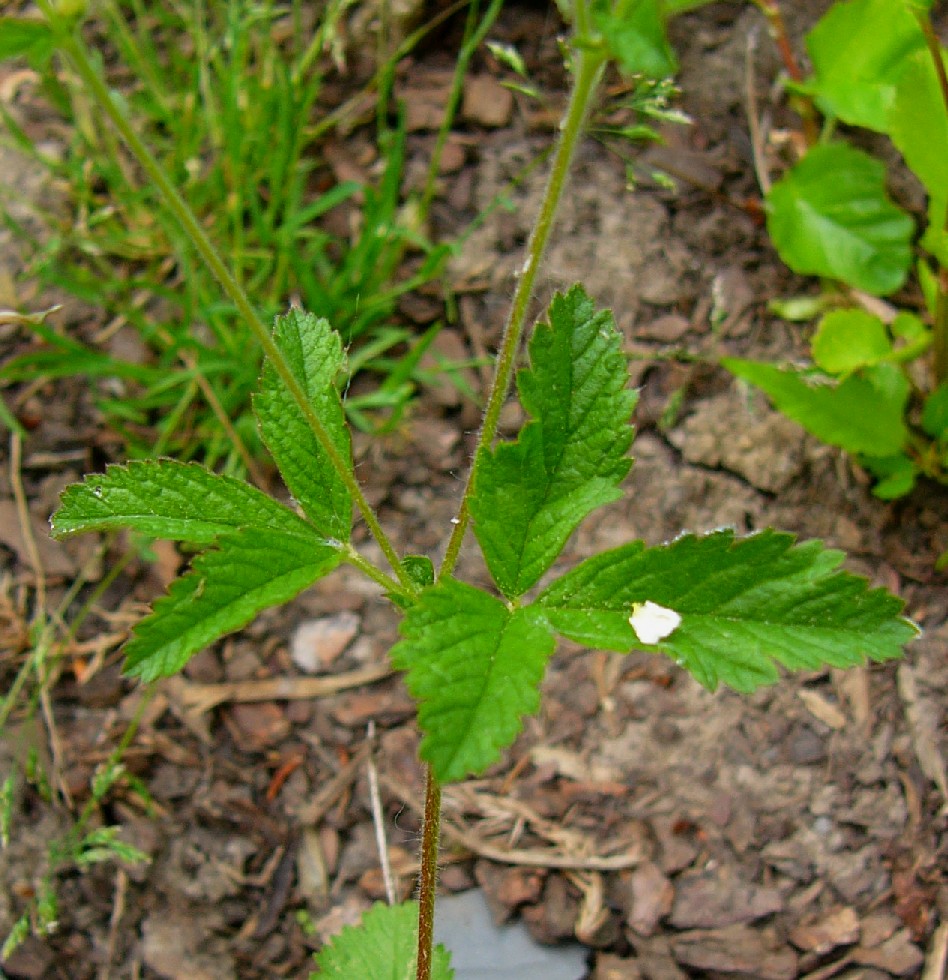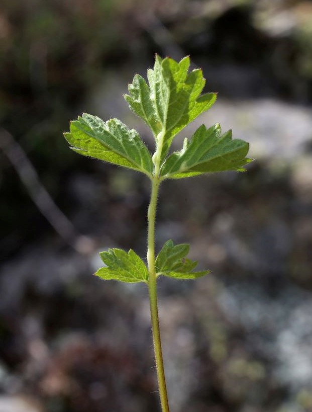 Stängel unten kahl, oft braunrot überlaufen, nach oben zunehmend zottig und drüsig Stängelblätter 3- zählig, oft fehlend Grundblätter gesägt, 5- 7- zählig gefiedert,