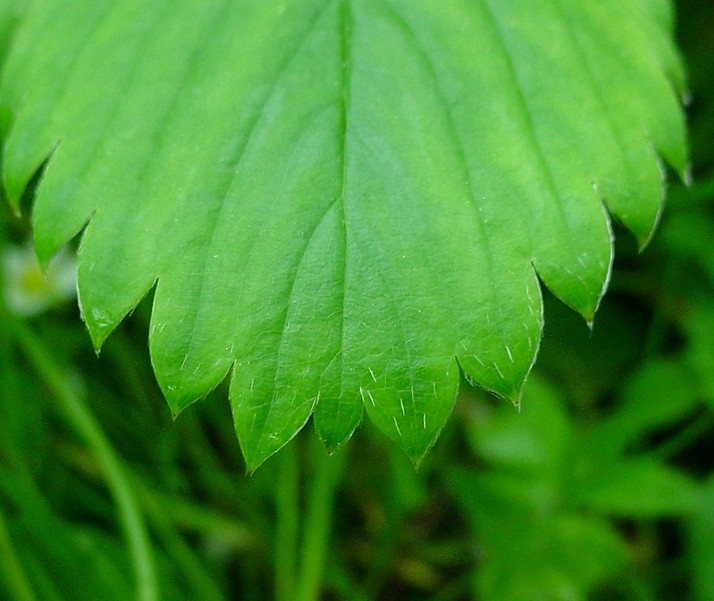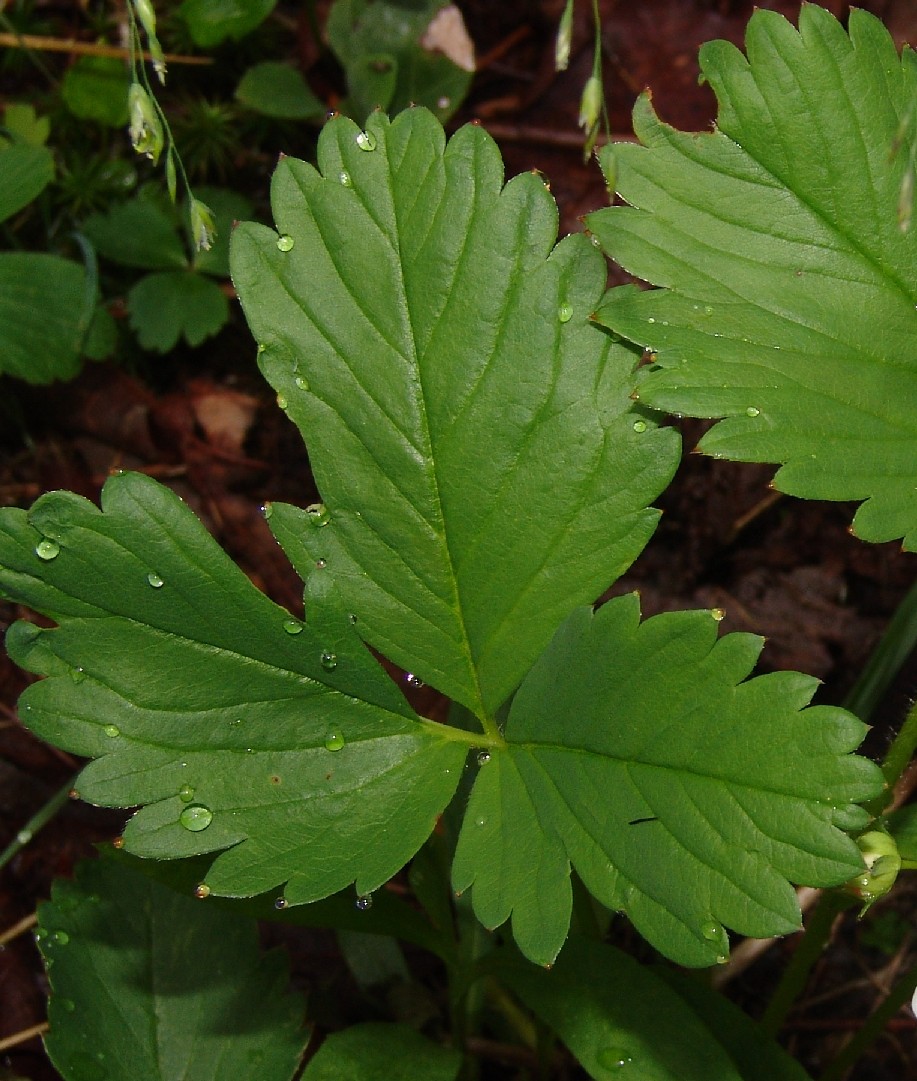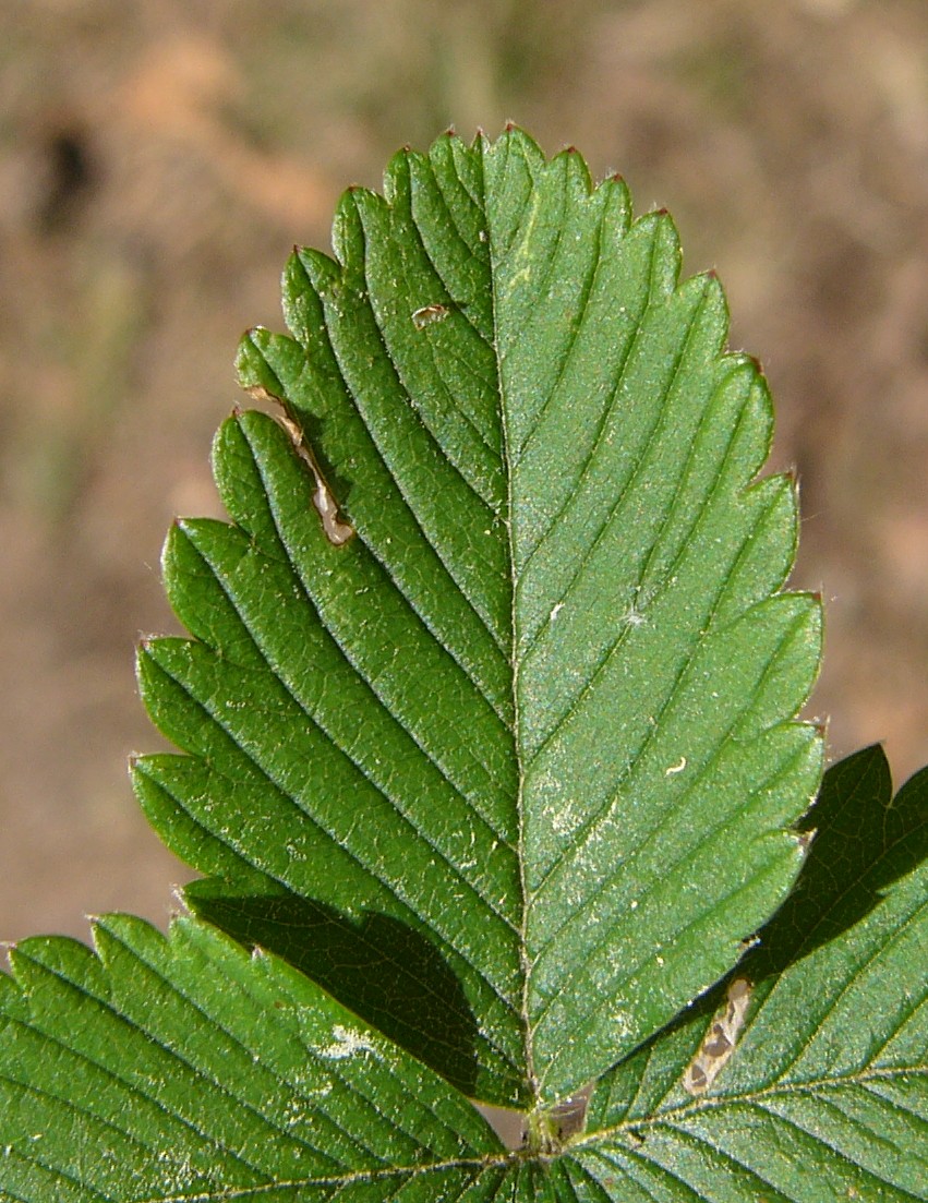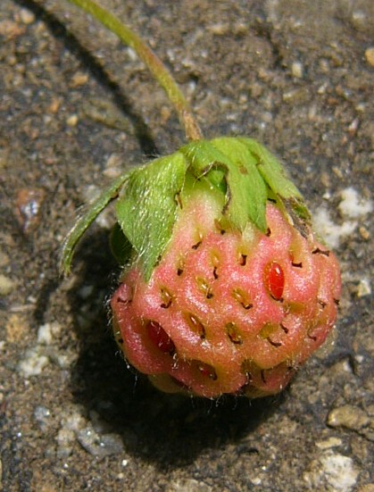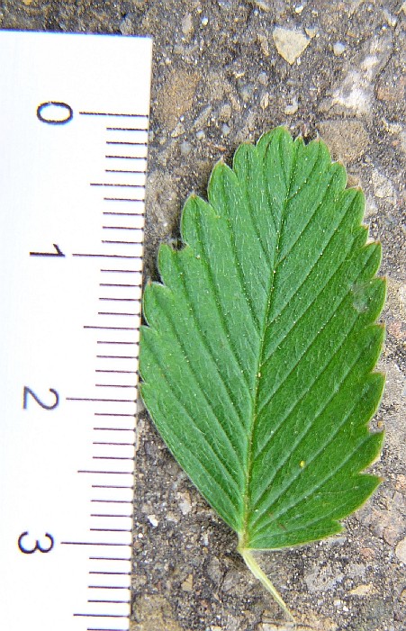 Fragaria, Früchte klein, Endzahn des Mittelblättchens kürzer als die seitlichen Zähne