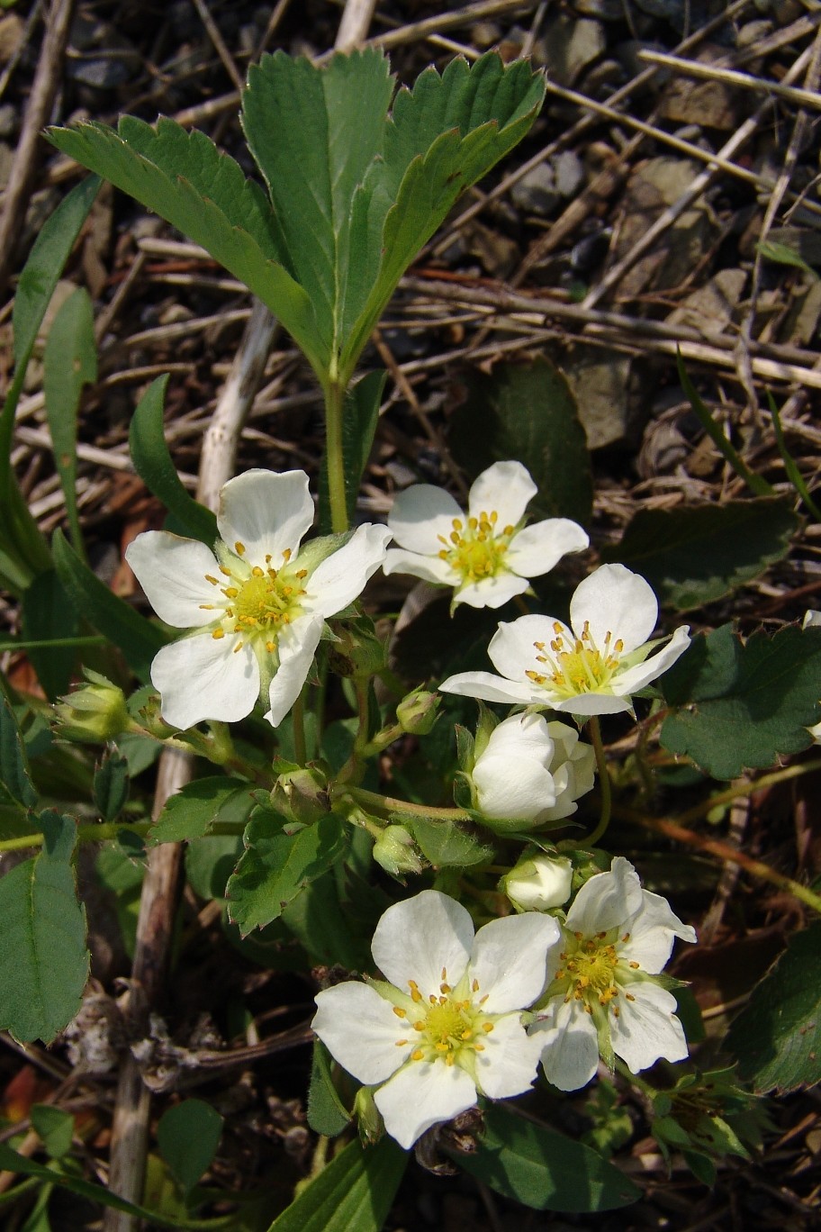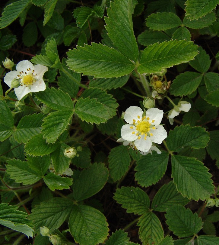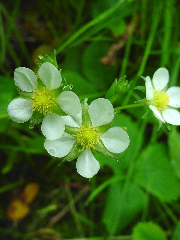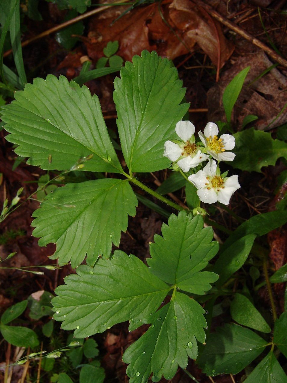 Fragaria, Früchte klein, Endzahn des Mittelblättchens kürzer als die seitlichen Zähne