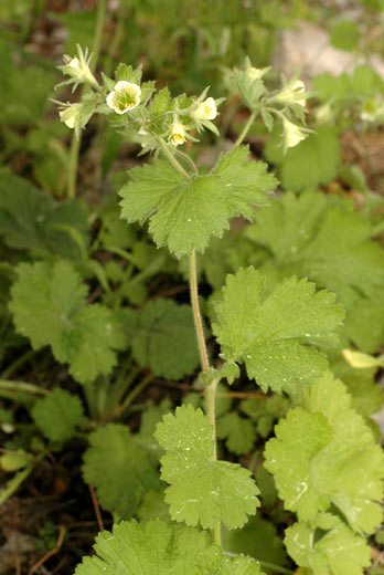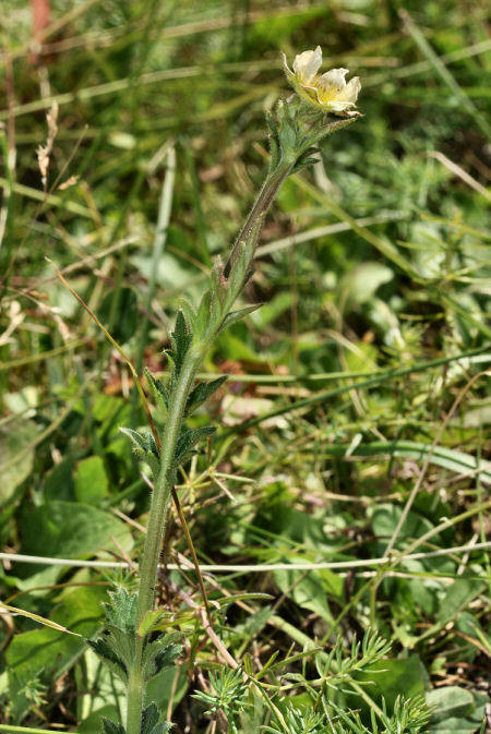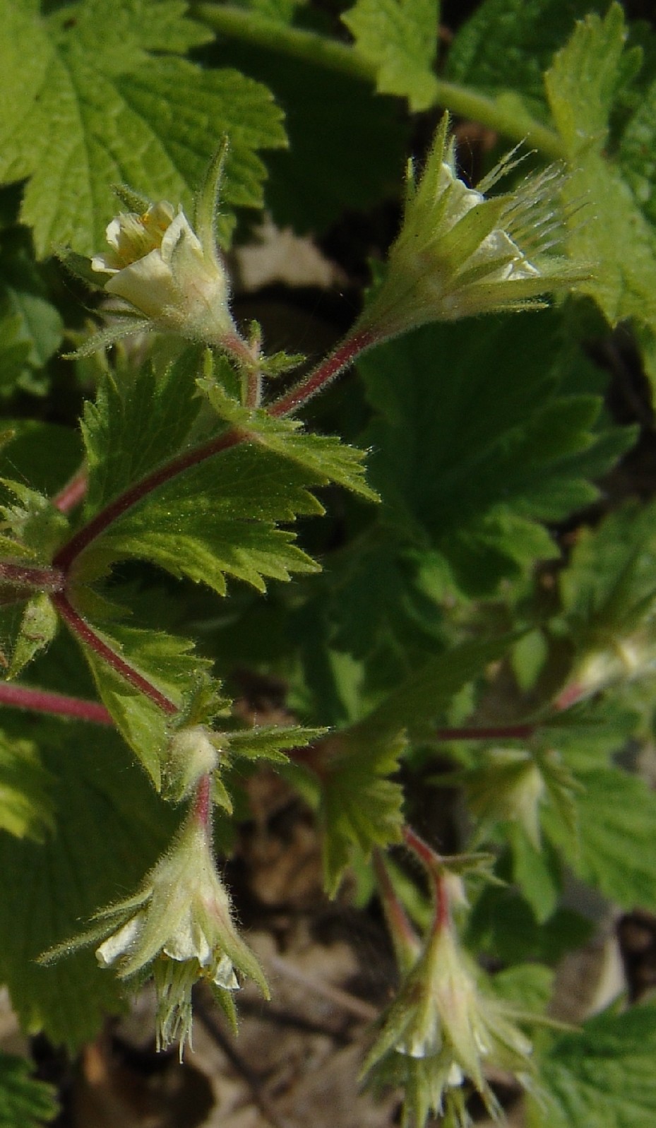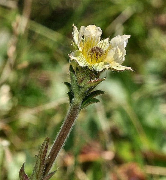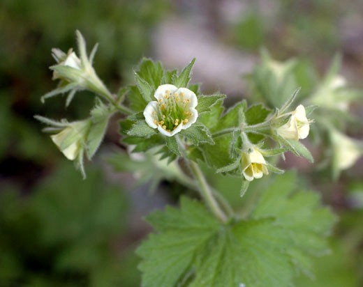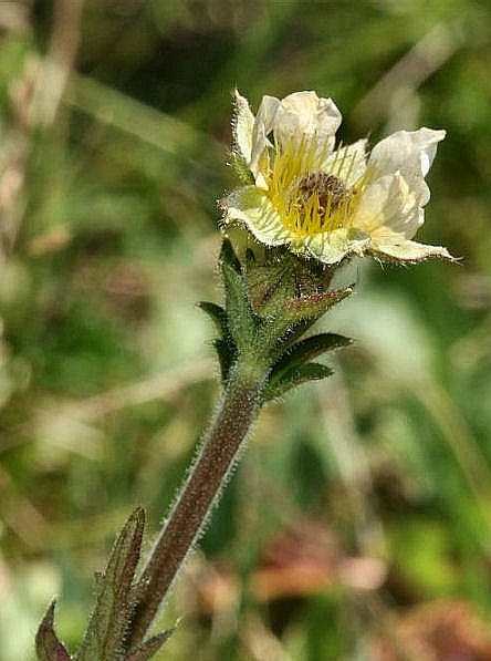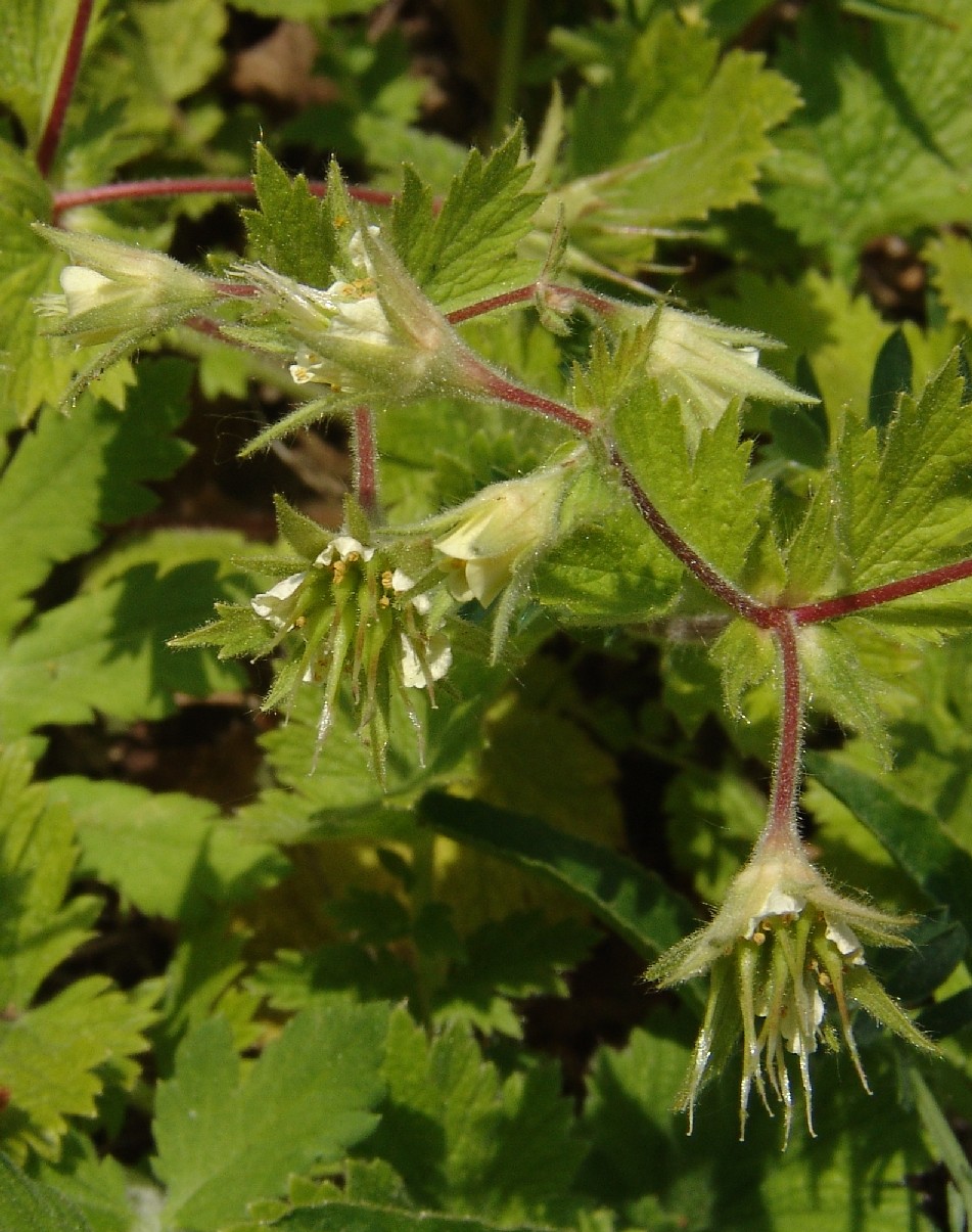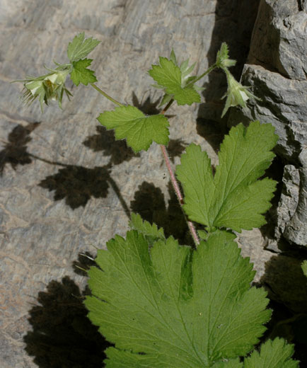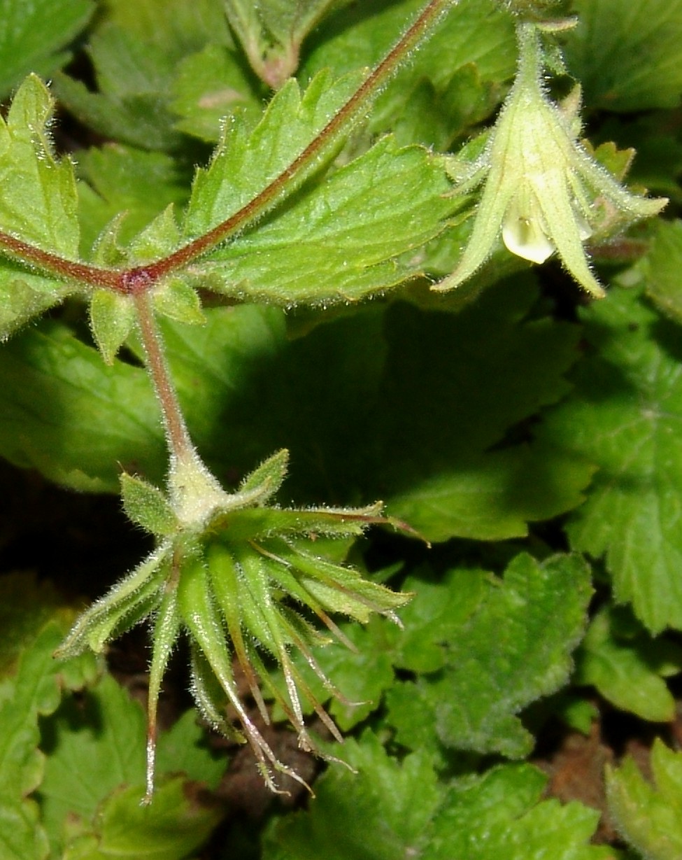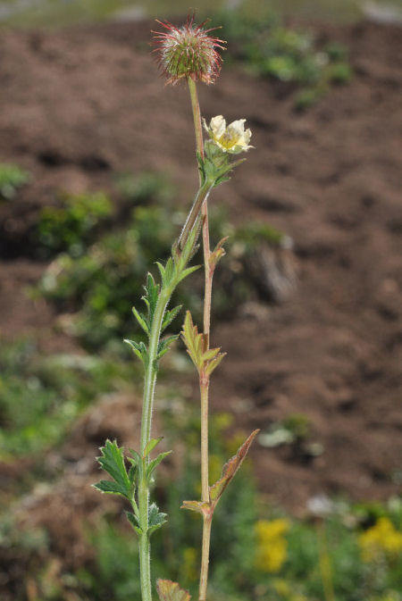 Geum- Blüten hellgelb, Kelch grün, Stängel mehrblütig, Fruchtstand mit wenigen Früchten