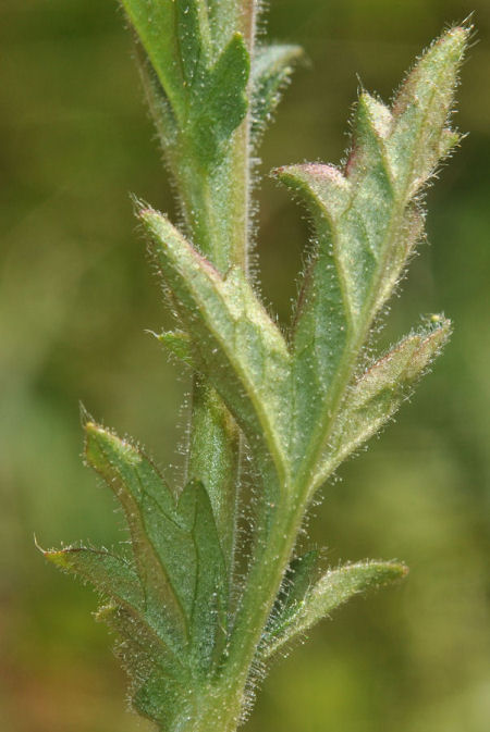 Stängelblätter dreilappig, gestielt, Blättchen +/- spitz,
