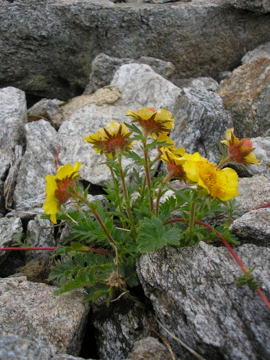Hochgebirgspflanze Pflanze kriechend, meist einblütig, Blüten groß, aufrecht > Pflanze meist einblütig, Blüten groß, aufrecht