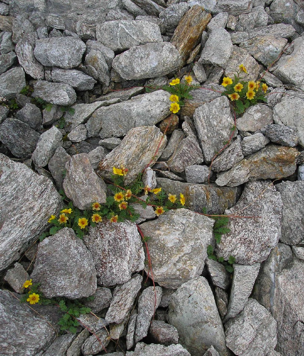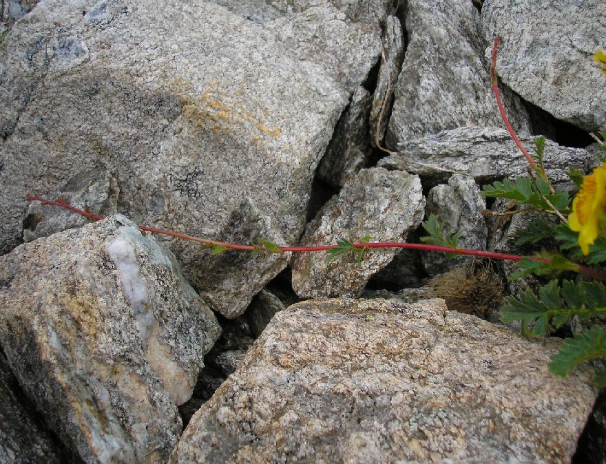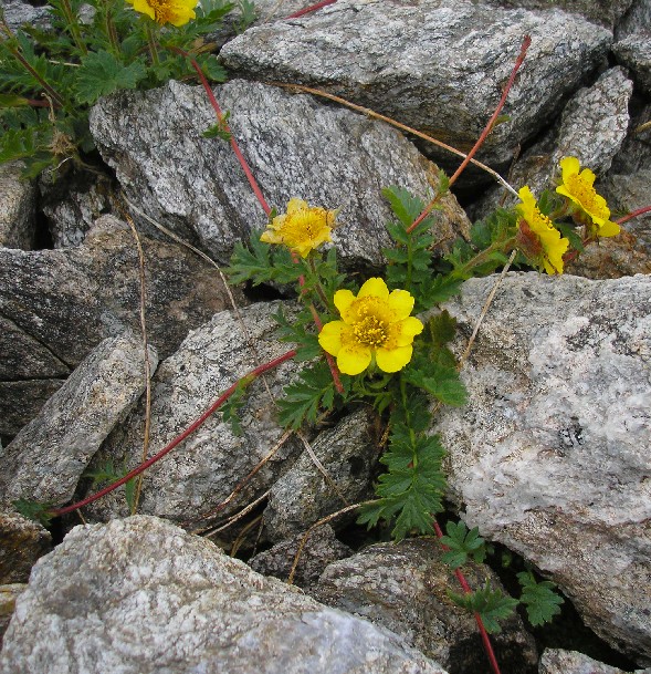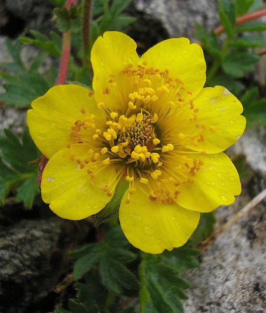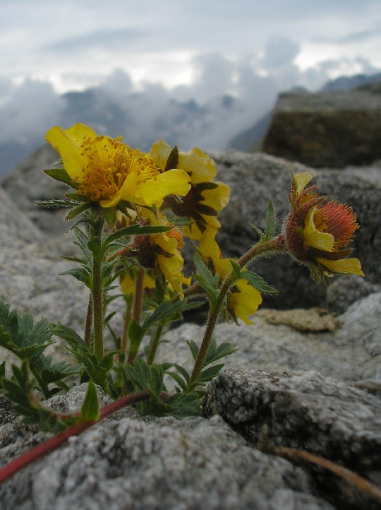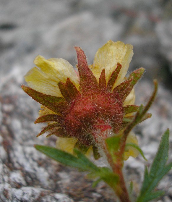 Geum - Pflanze kriechend, einblütig, Blüten gelblich, Kelch rotbraun