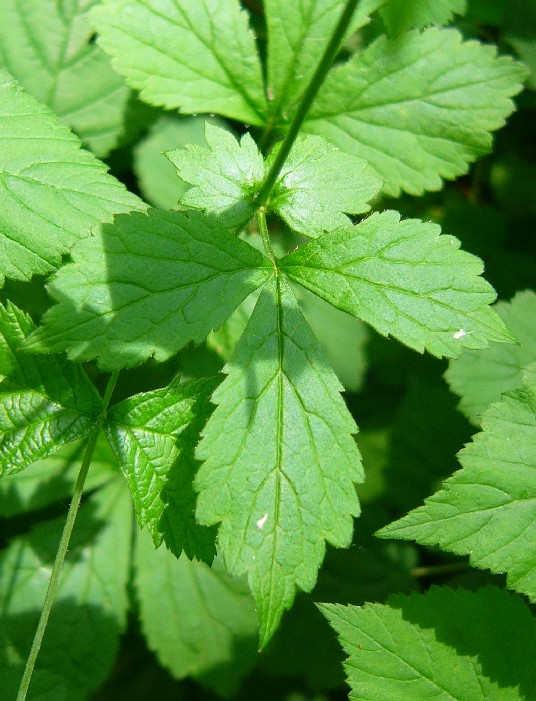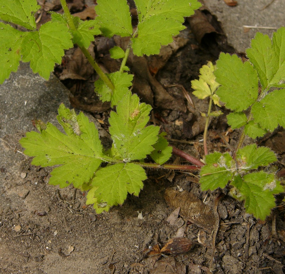 Kelch grün, an der Blüte abstehend Kelch an der Frucht zurückgeschlagen Griffel in der Mitte durch hakige Krümmung geschnäbelt, Schnabel kahl Stängelblätter kurz gestielt, 3- zählig Grundblätter rosettig, mit 10 cm langem Stiel, unregelmäßig gefiedert, Endblättchen etwas größer als die Seitenblättchen, 3-lappig, Blattlappen spitz