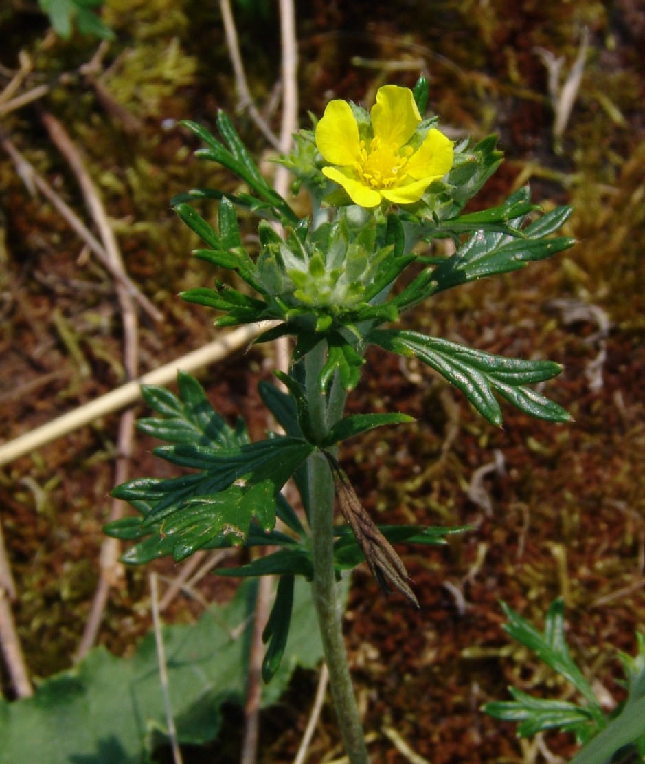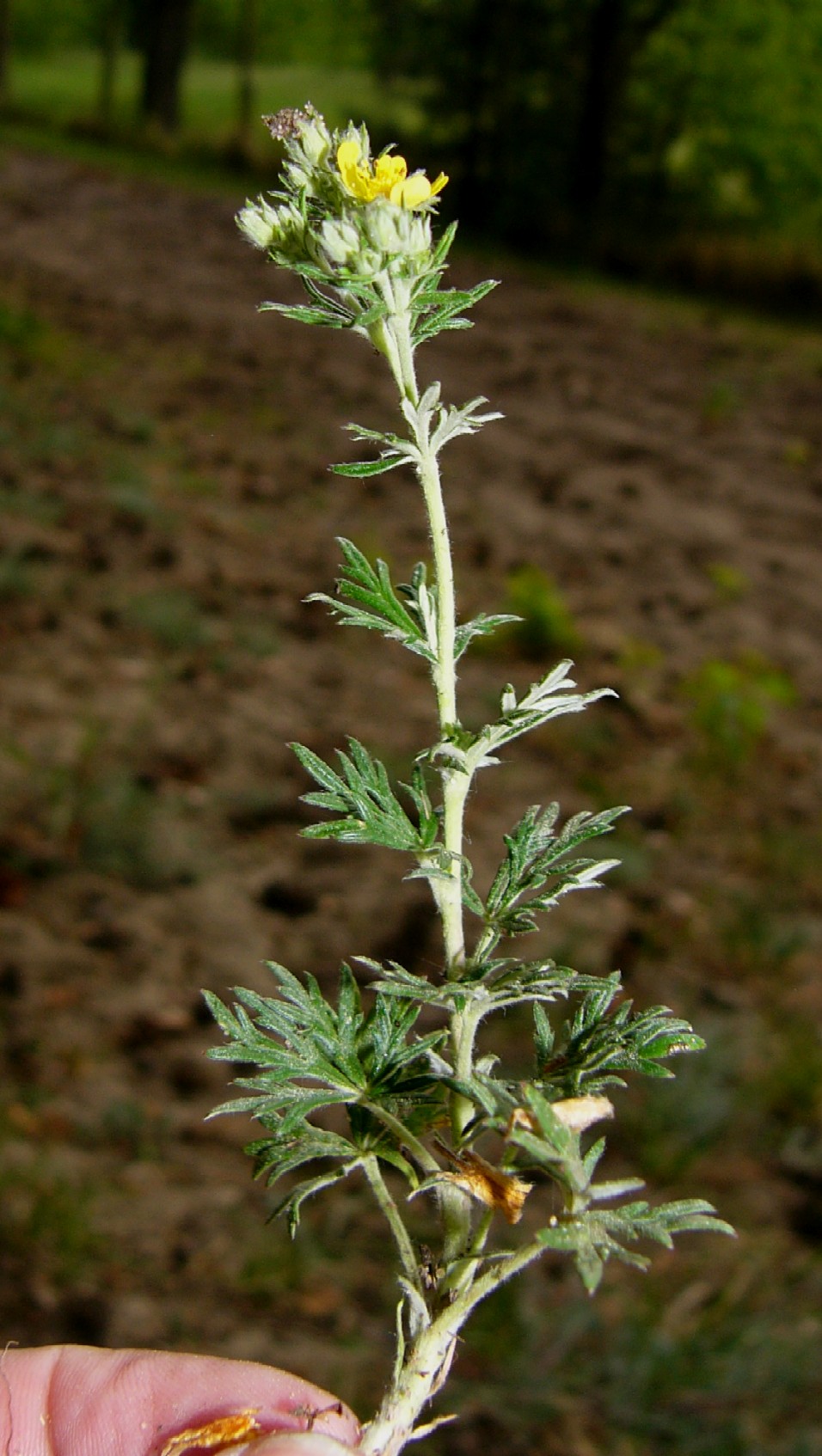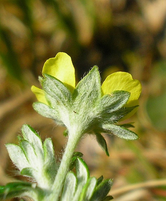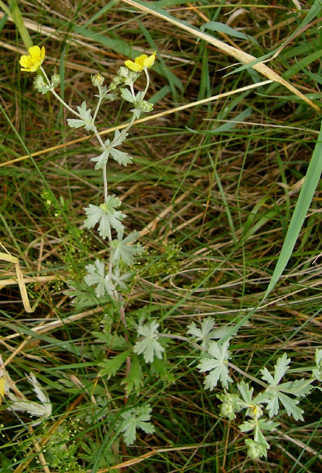 höherwüchsig und +/- aufrecht. Im Gegensatz zu Potentilla argentea ist