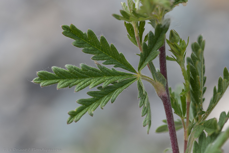 oberen Hälfte, Drüsenhaare spärlich oder fehlend Grundblätter meist 5- teilig, Blättchen mit 4 - 7 Zähnchen jederseits > Blättchen mit 4 - 7 Zähnchen jederseits