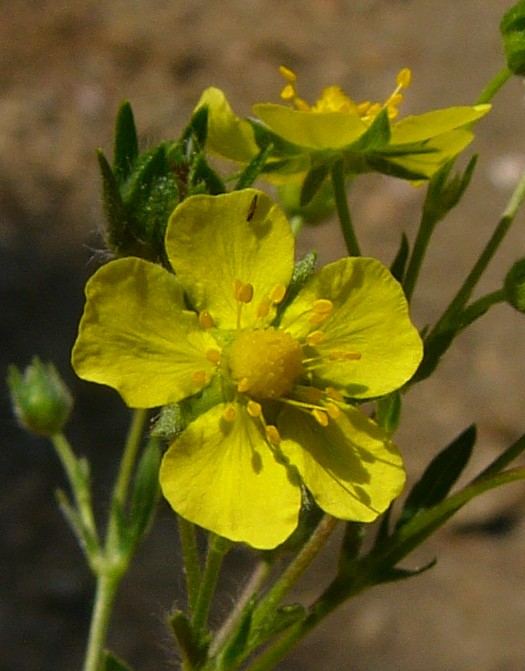 niederliegend bis aufsteigend Blüten 10 - 20 mm im Durchmesser Nebenblätter +/- ganzrandig Blätter 4 - 10 cm im Durchmesser Blättchen der Grundblätter schwach gesägt, mit 7 - 12 Zähnen > 1