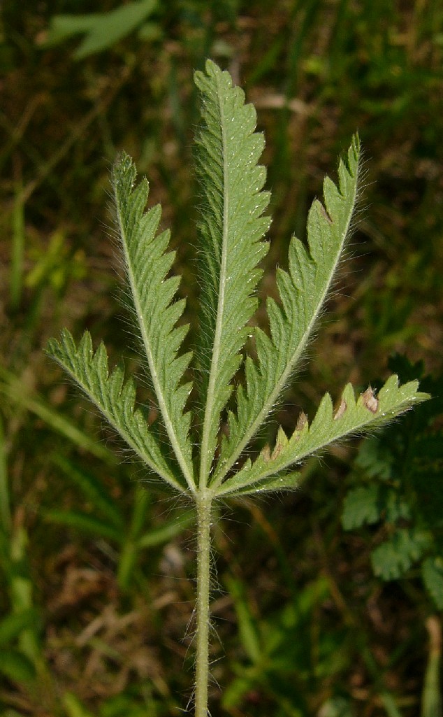 VI - VII, Trockenrasen, Felsfluren, Ruderalstellen Synonyme: English name: Nom francais: Nome italiano: Weltweite Verbreitung: Eingebürgert in: Etymologie: Ähnlich ist Potentilla hirta. Die Blättchen von Potentilla hirta haben jedoch nur 3 - 5 Zähnchen an der Spitze und Stängel und Blätter haben nur lange Haare und keine Drüsenhaare.