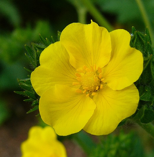 gelb, 5 überlappende Kronblätter, Früchte nicht erdbeerähnlich,