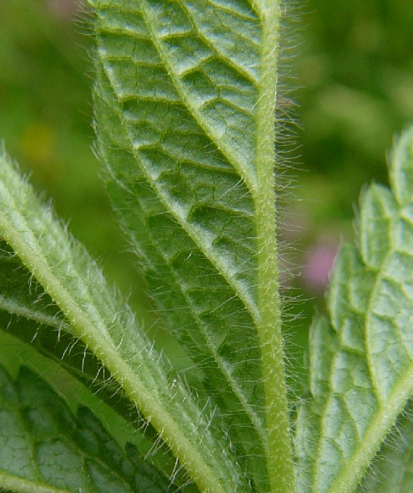 Blattunterseite lang abstehend, jedoch nie filzig behaart