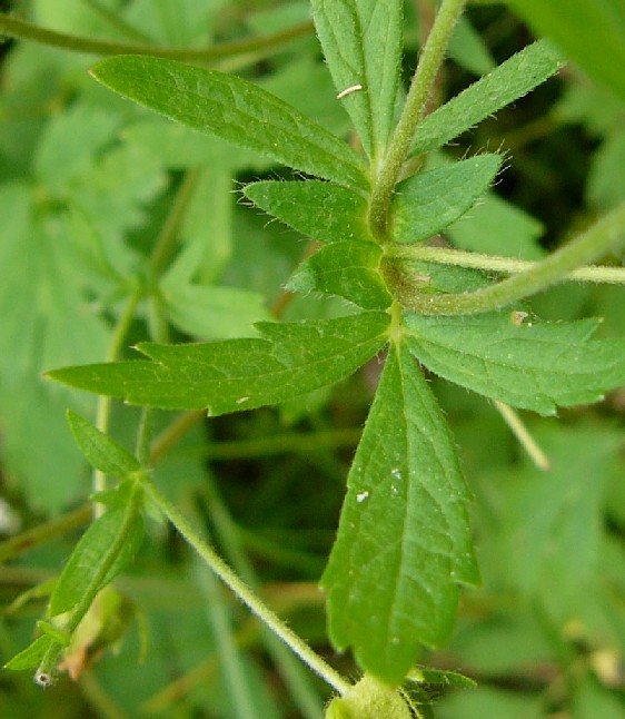 aufrecht Blüten 22 - 25 mm im Durchmesser Nebenblätter mit 3 - 5 Zipfeln Blätter 6 - 16 cm im Durchmesser Blättchen der Grundblätter tief gesägt, mit 10 - 25 Zähnen > 2