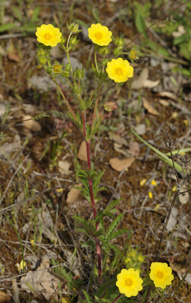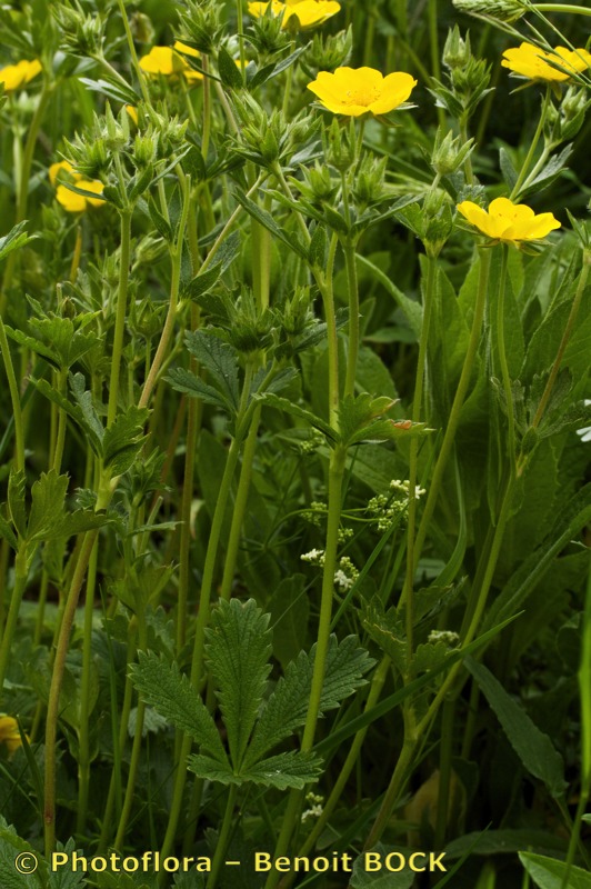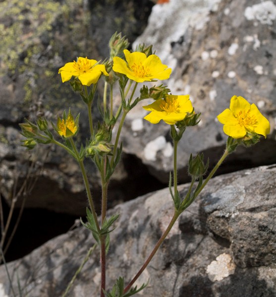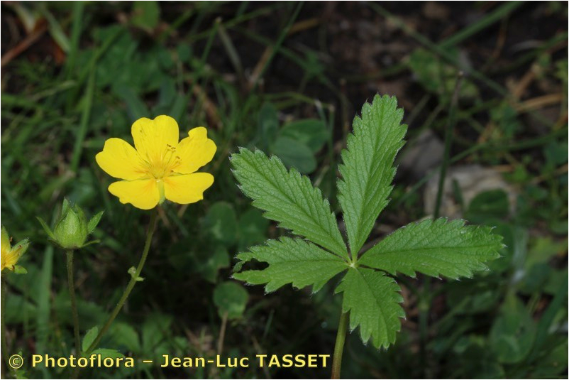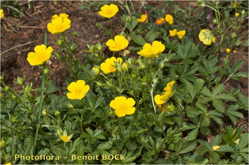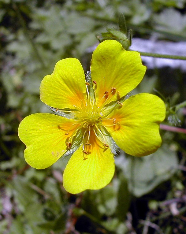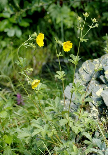 gelb, 5 überlappende Kronblätter, Früchte nicht erdbeerähnlich,