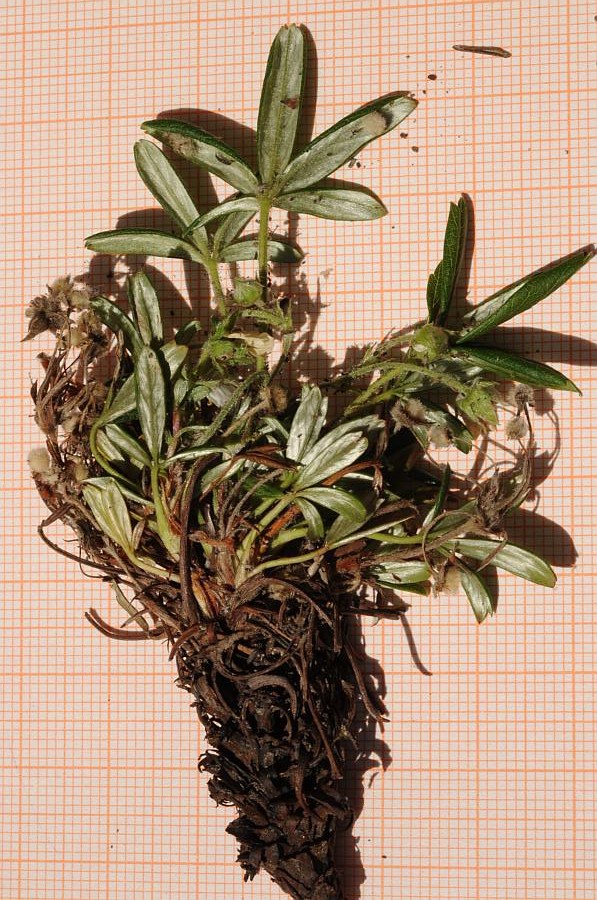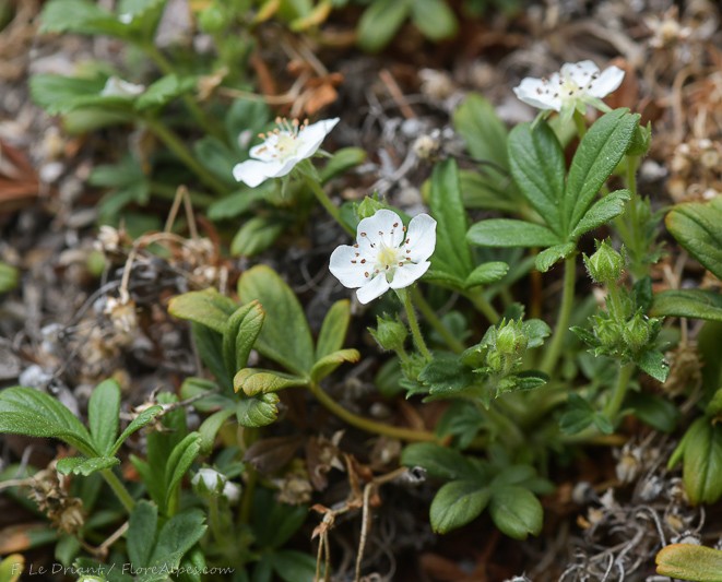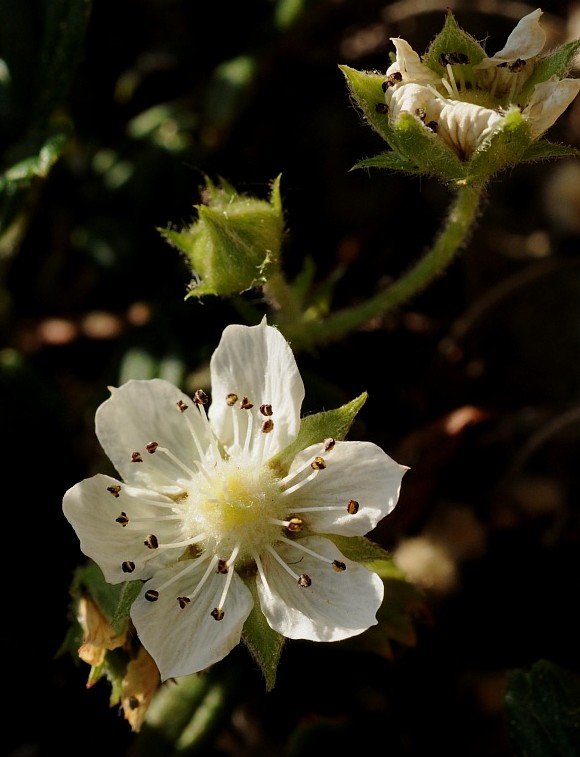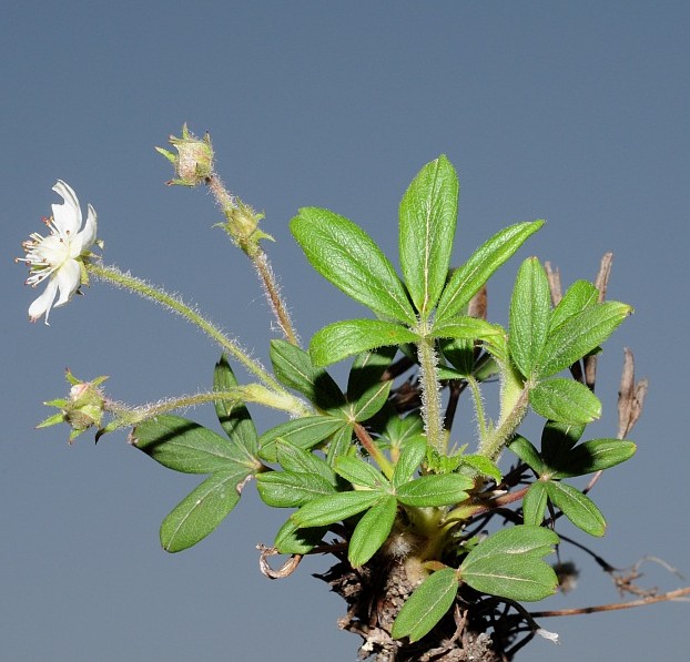 Potentilla - Blüten weiß, Blätter 5- zählig, Blütenstiele und Kelchblätter drüsig