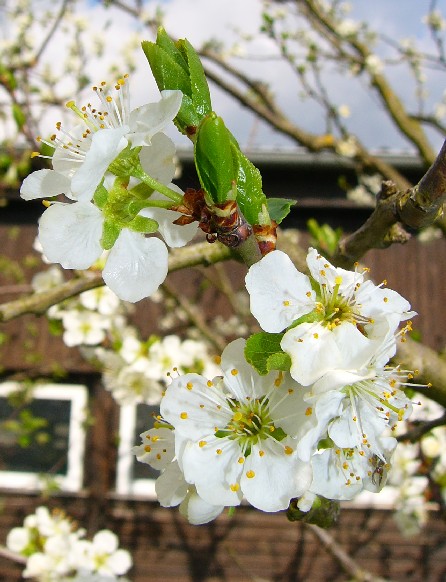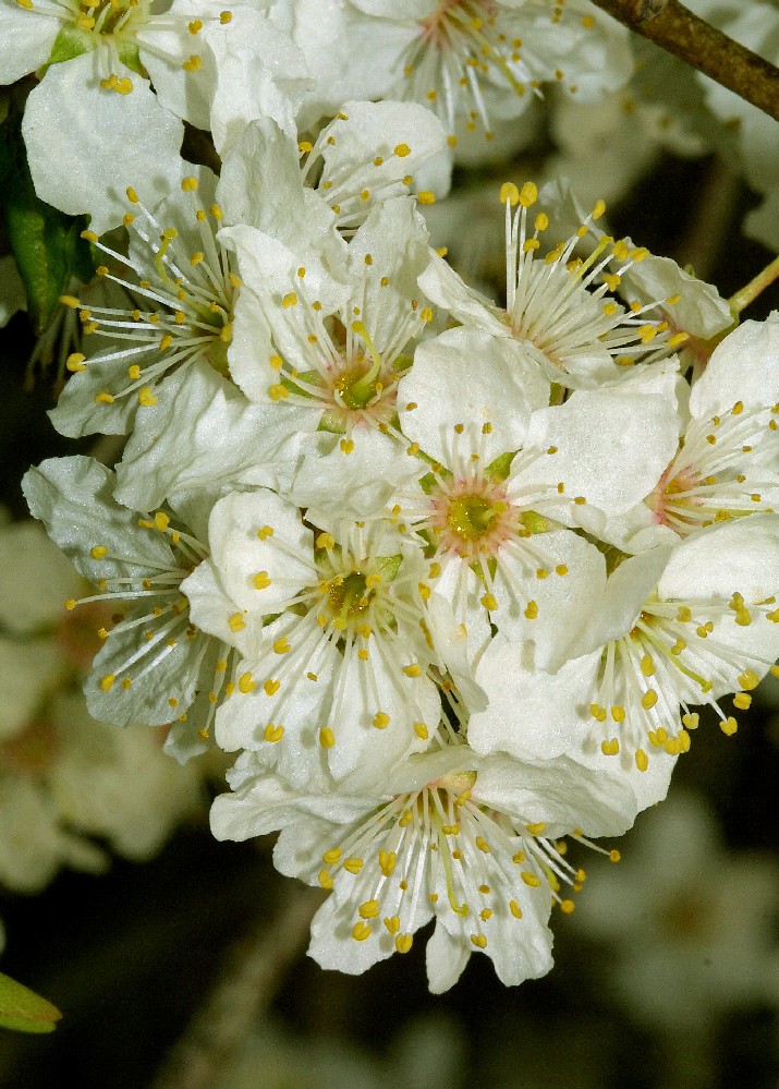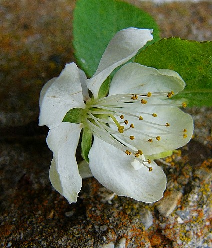 | Steinkern meist am Fruchtfleisch haftend Kronblätter weiß > 8