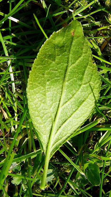 Frucht klein (1,5 - 3 cm), rundlich, blau mit rotem Saft