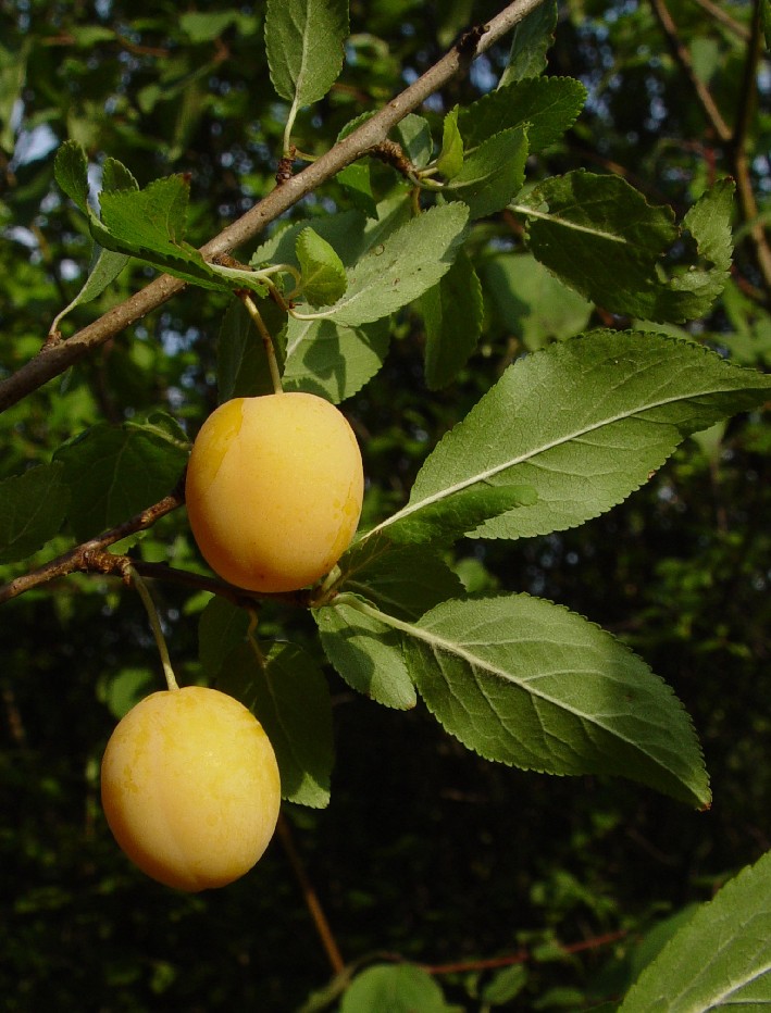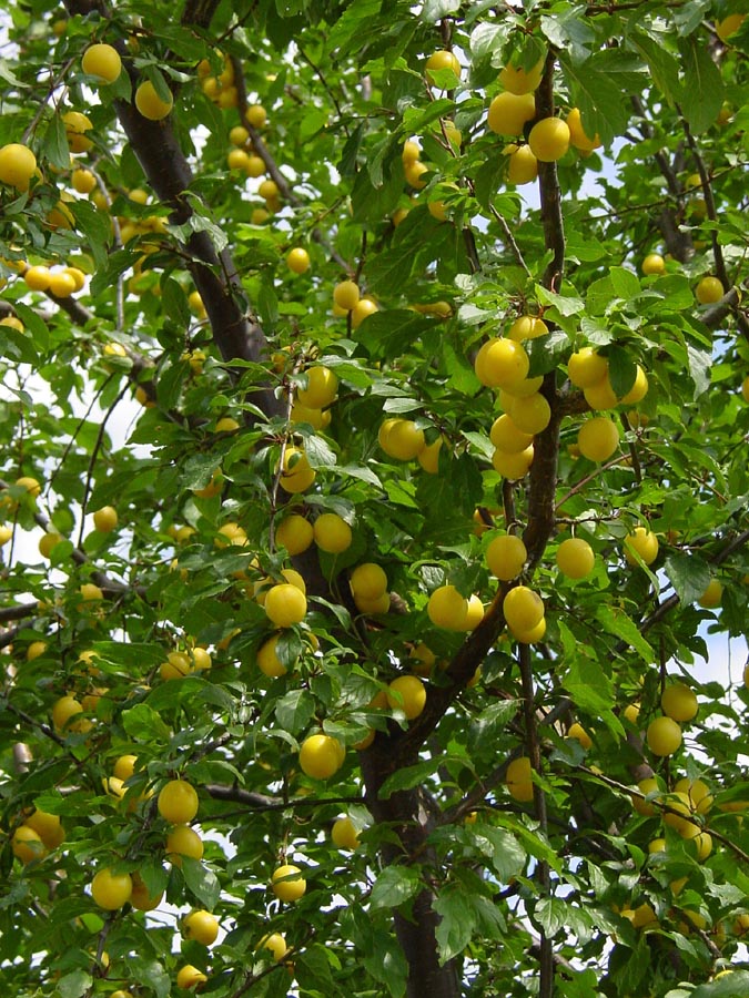 Frucht kugelig, 3 - 5 cm lang, grüngelb oder gelblich (var. claudiana = Reineclaude)