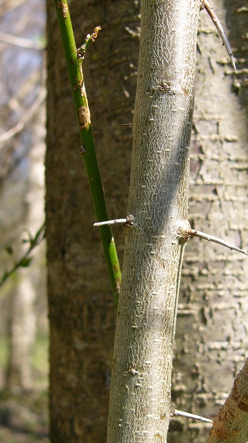 1- und 2- jährige Zweige samtig behaart Zweige mit Dornen